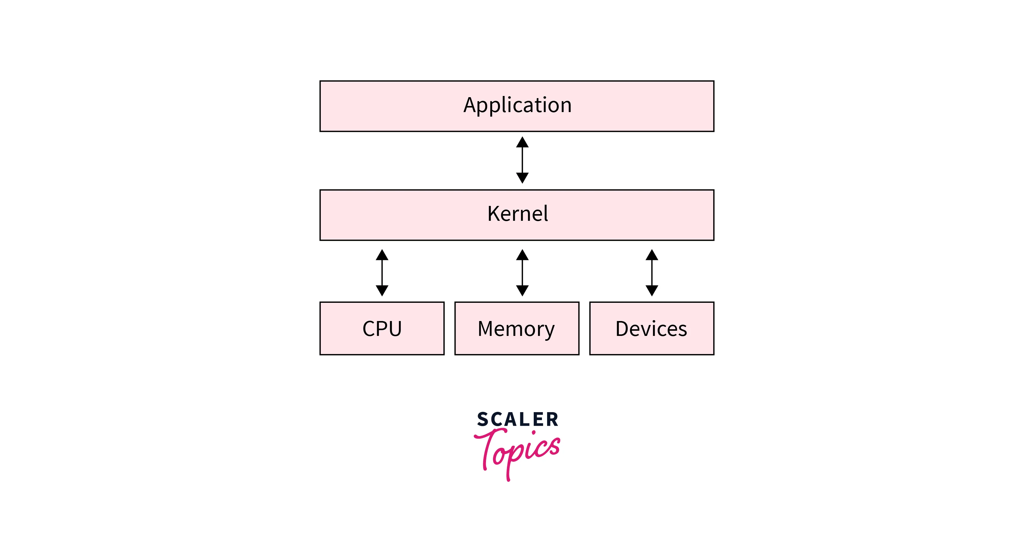 Let's understand what we said above with an illustration. When we try to record a video from our phone, the software on the phone communicates the Kernel that wants inputs from sensors on the phone (camera and microphone). The Kernel tells the microphone and camera to get ready, and this way, both software, and hardware interact using Kernel to record a video on the phone. The Kernel is also responsible for managing various system components like memory, processes, storage and tasks.
