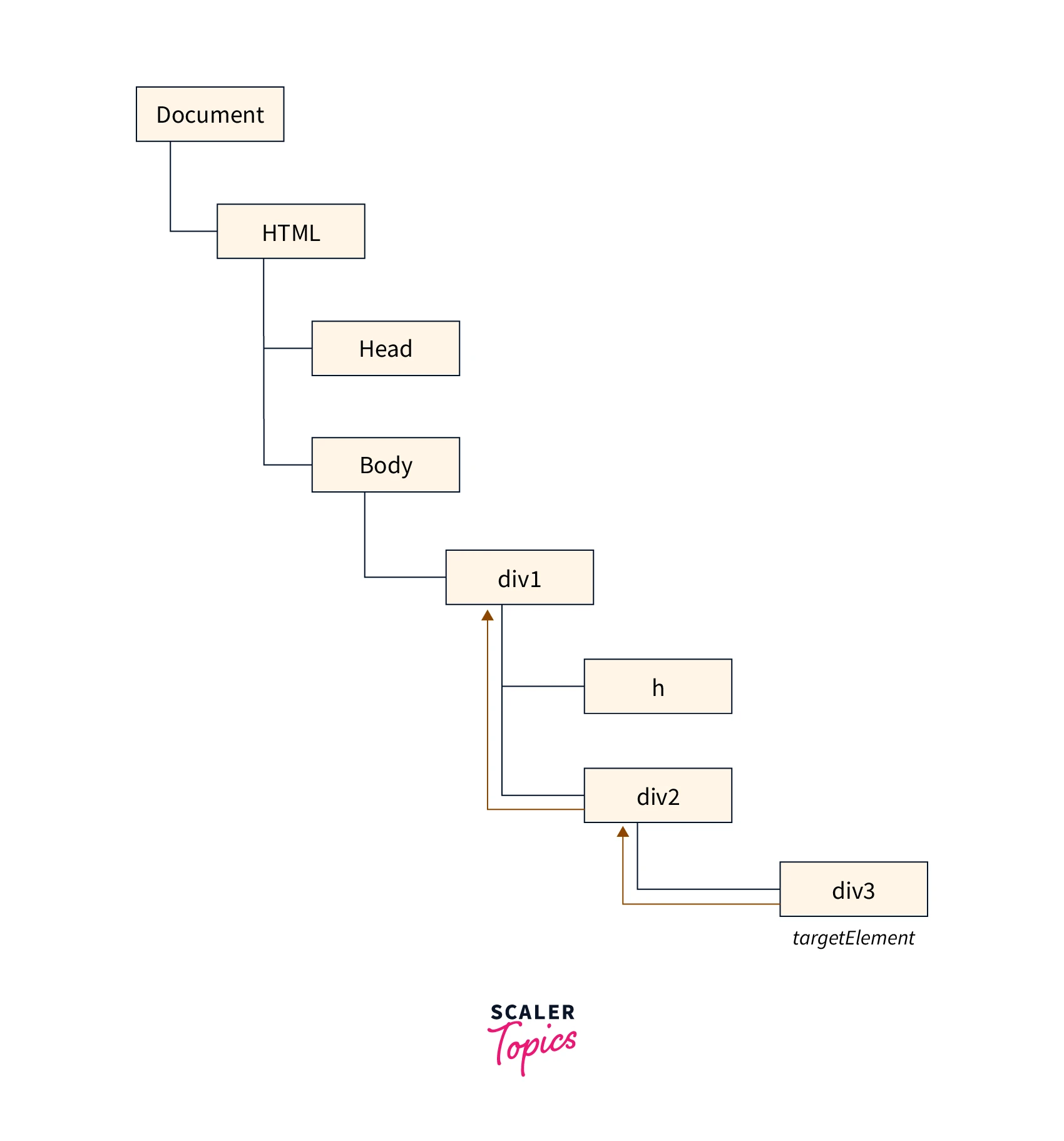 Every HTML document can be represented in the form of a tree known as DOM. The javascript closest method is used to traverse up the DOM tree from the target element until an element that matches the selector passed is found. The closest() method starts at the element itself, then the ancestors until a match is found. If no matches are found, the closest() method returns null.