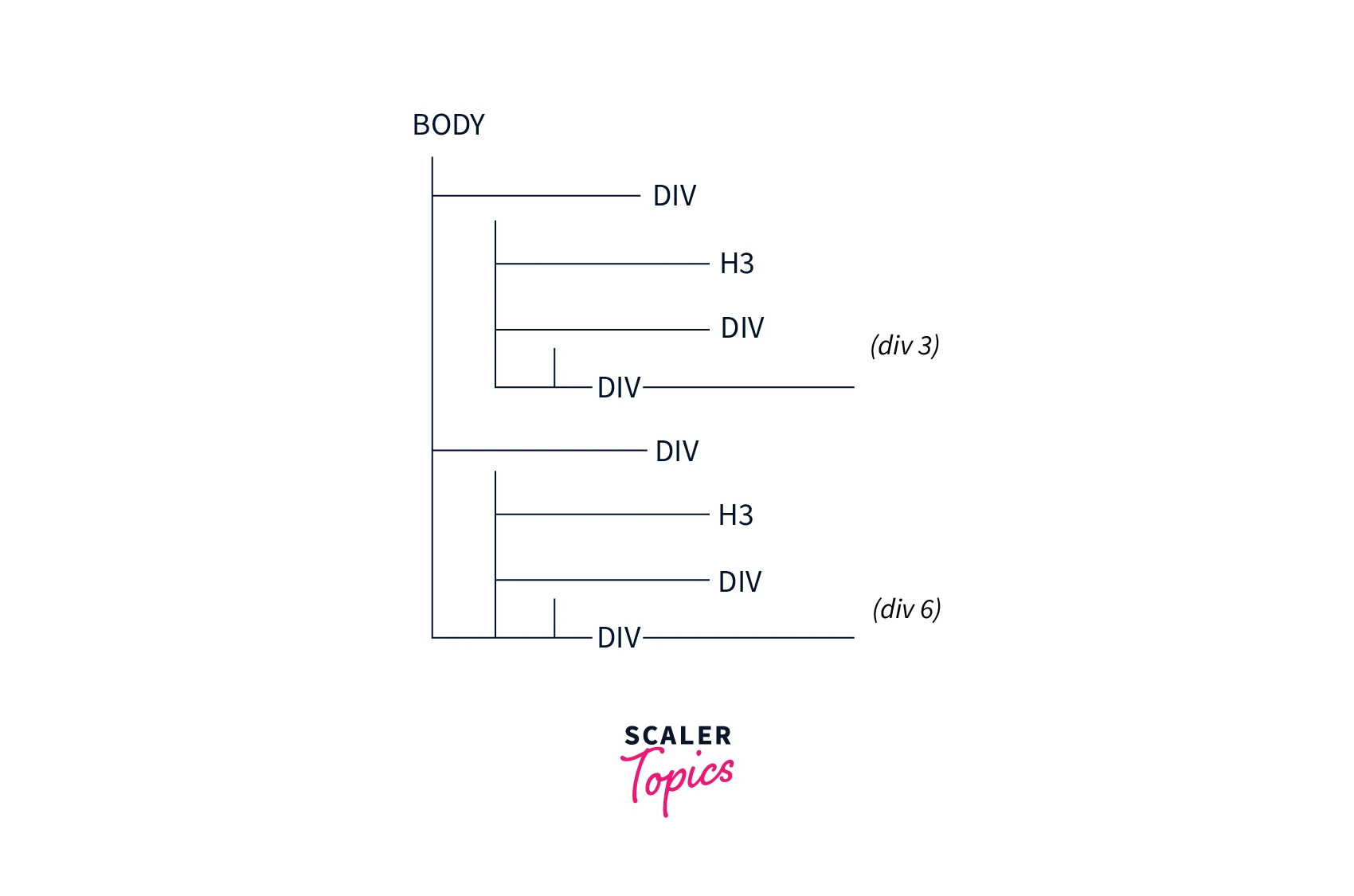 - As the div6 element is present in the sibling, the closest method in JavaScript can't find div6. Hence, null is returned.
