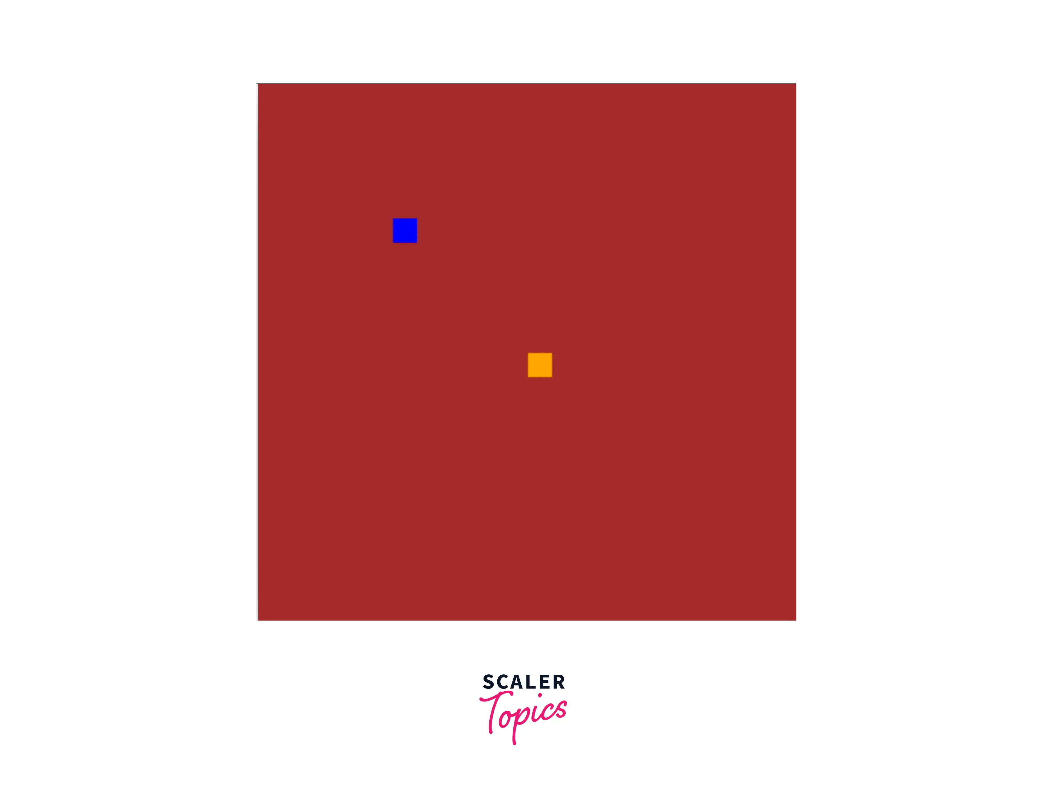 The output will be displayed as shown below where the blue part is the food and the orange part is the initial length of the snake.