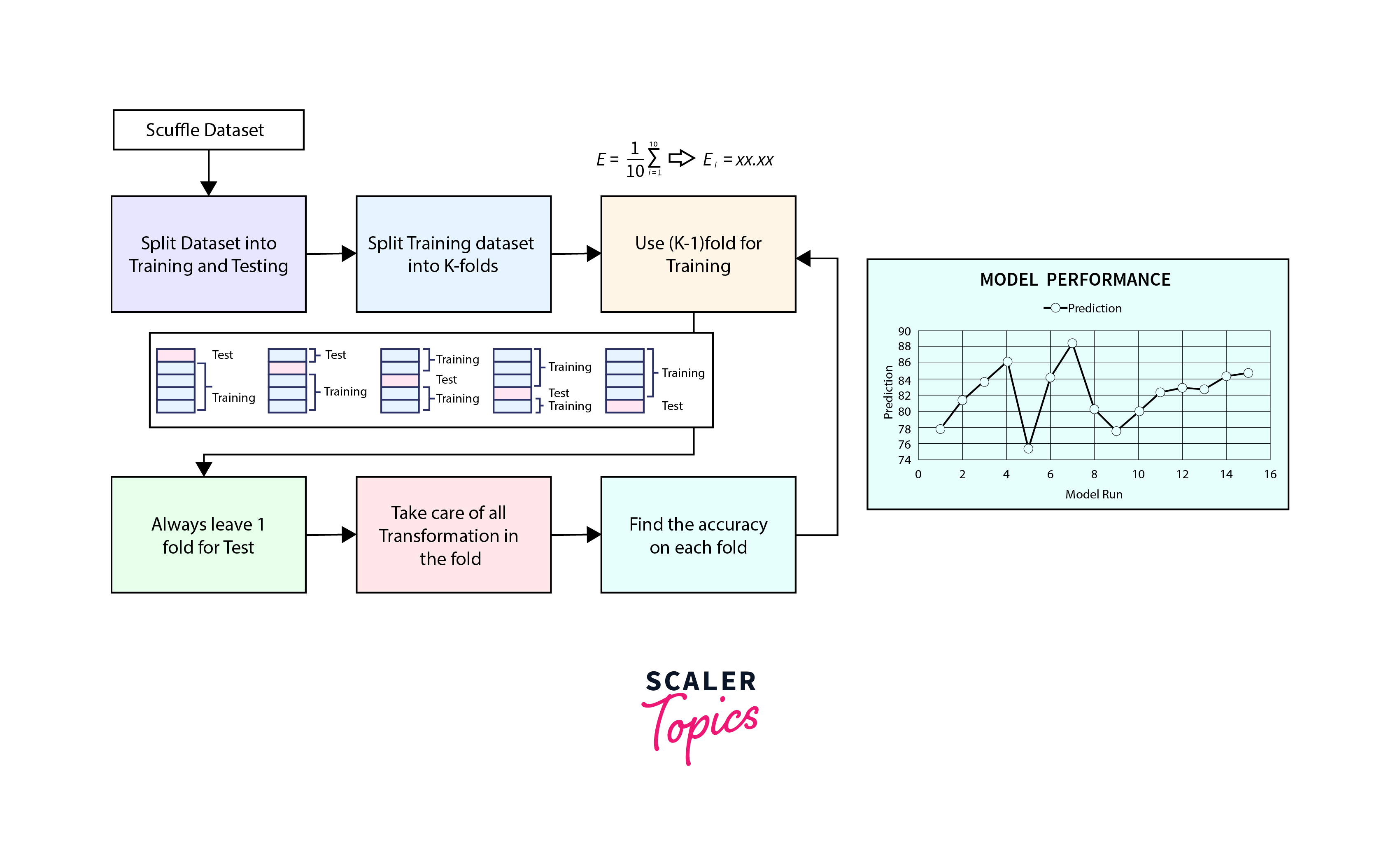 Average Performance: To obtain a more stable and reliable estimate of the model's performance, the recorded metrics from all 'K' iterations are averaged. This average performance metric serves as a consolidated measure, smoothing out potential fluctuations that may arise from a single train-test split. Averaging helps mitigate the impact of outliers and randomness, providing a more representative evaluation of the model's capabilities.