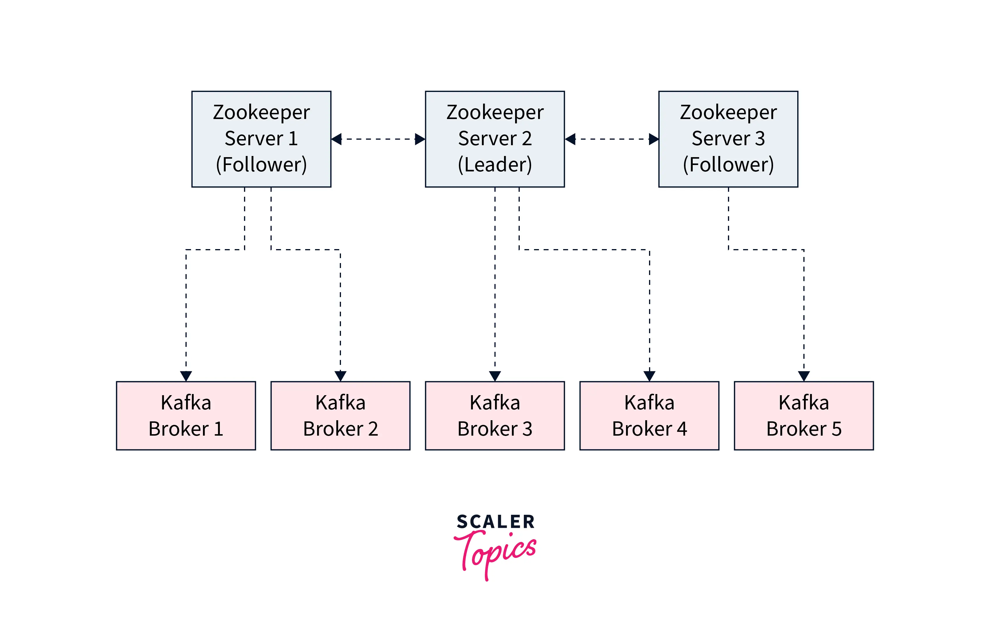 Hence, the brokers could create the Kafka cluster by exchanging information with each other either directly or indirectly via the Zookeeper. It is one broker among all the brokers in a Kafka cluster that acts as the controller.