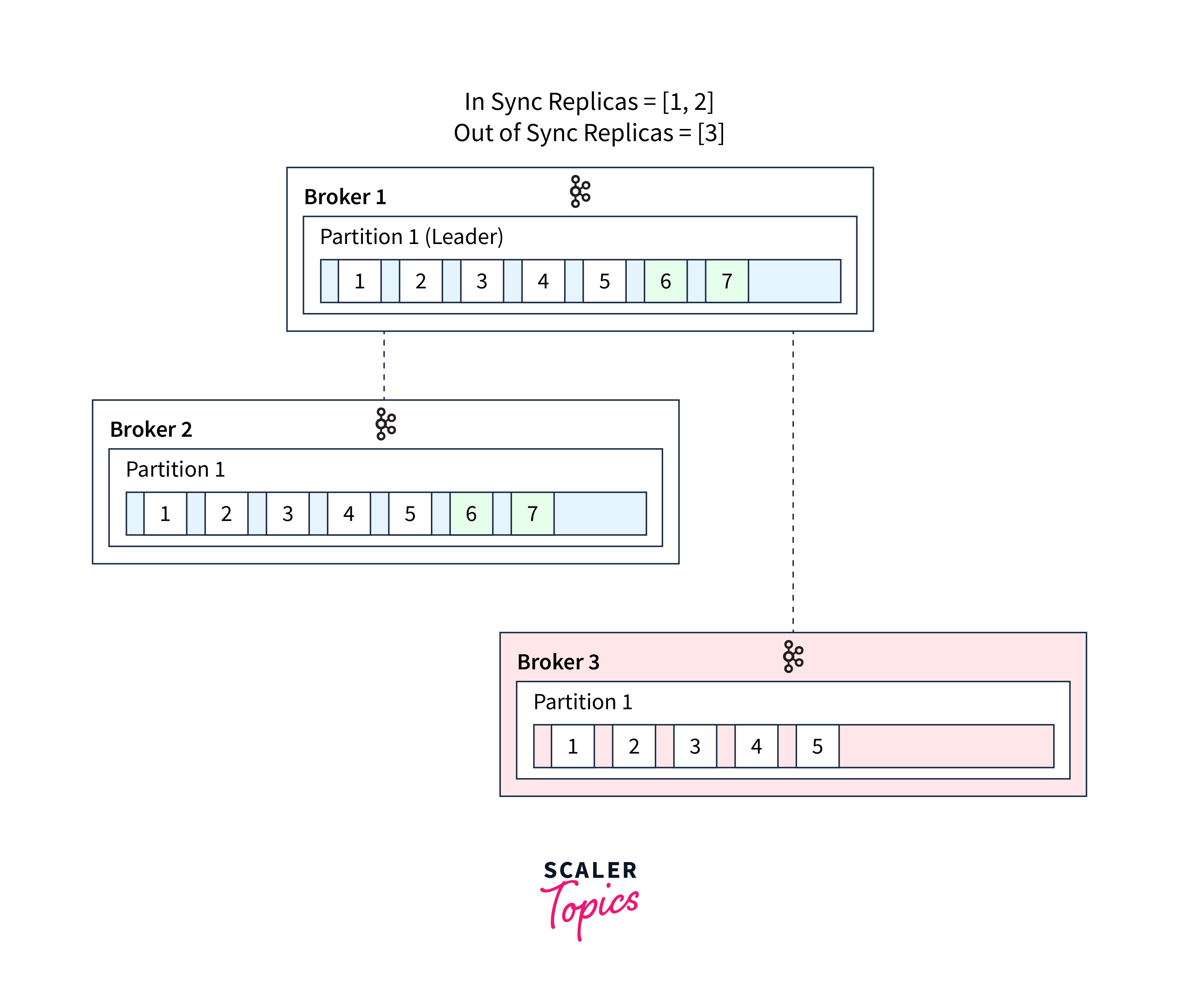 - If a follower broker lags behind the latest data, it is no longer considered an in-sync replica.