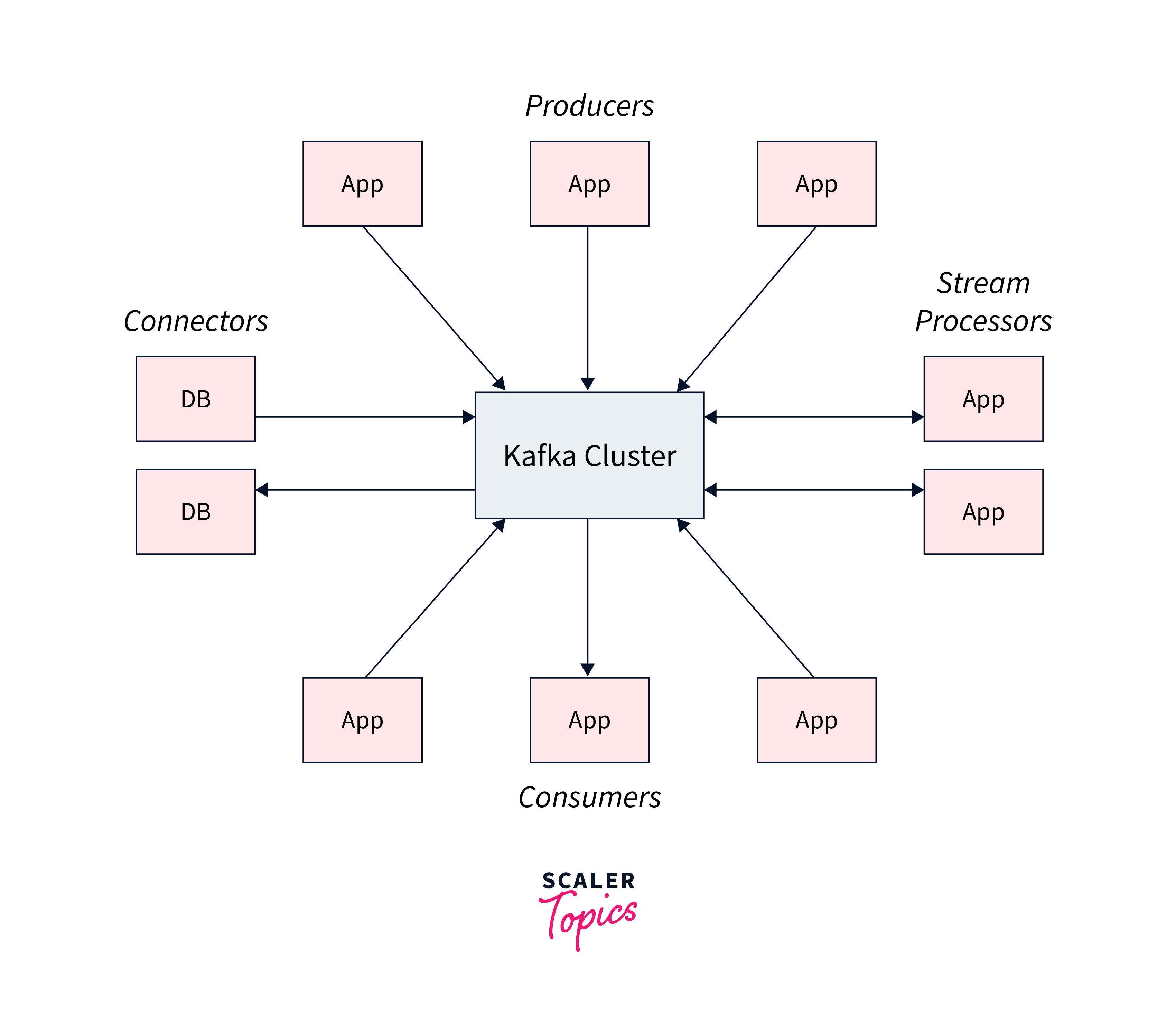 Various applications use different methodologies when developing the architecture of Apache Kafka. However, other fundamental components are required to build a strong Kafka architecture, including Kafka Cluster, Producers, Consumers, Brokers, Topics, Partitions, and Zookeeper.