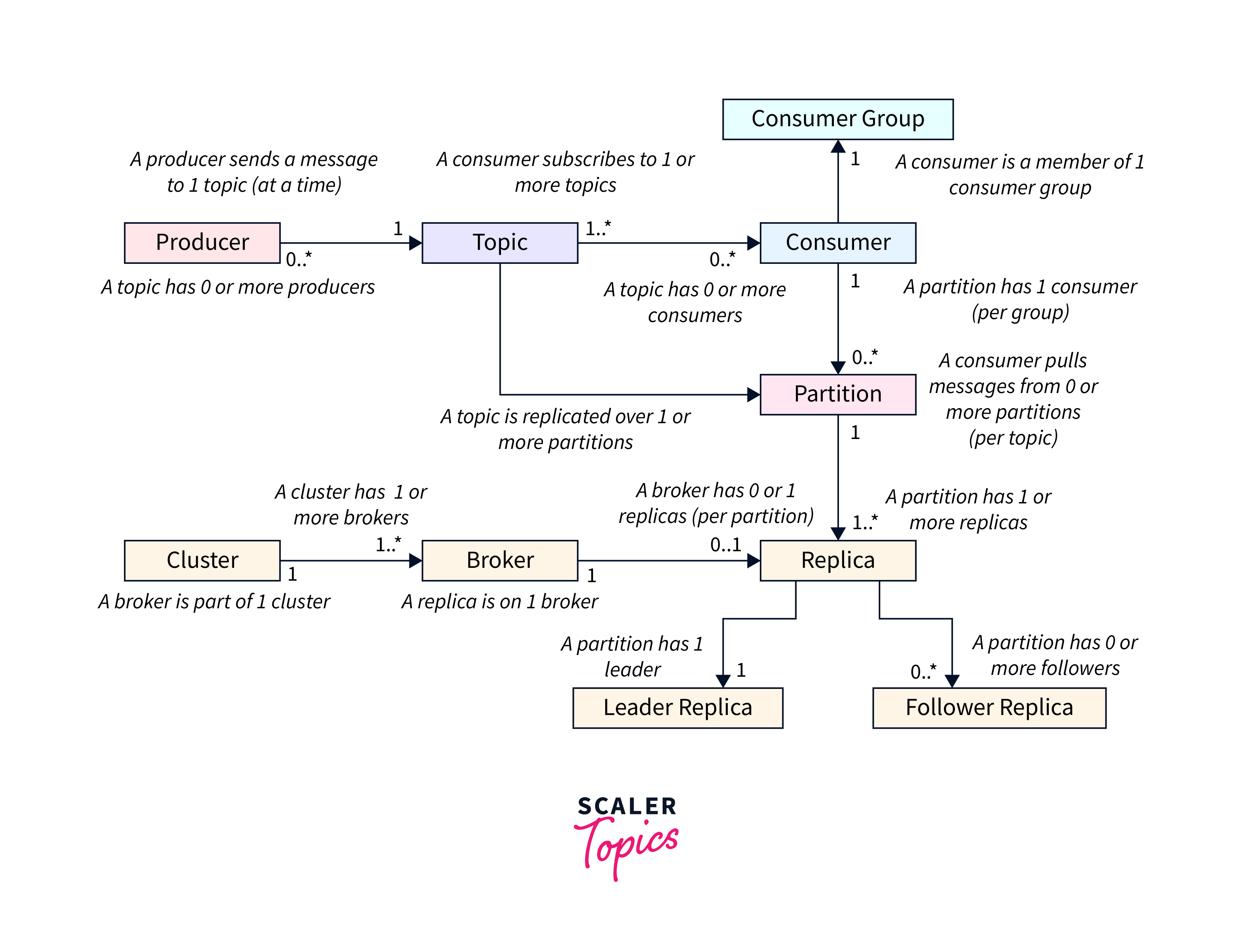 - Consumers consume communications from topics to which they have subscribed.