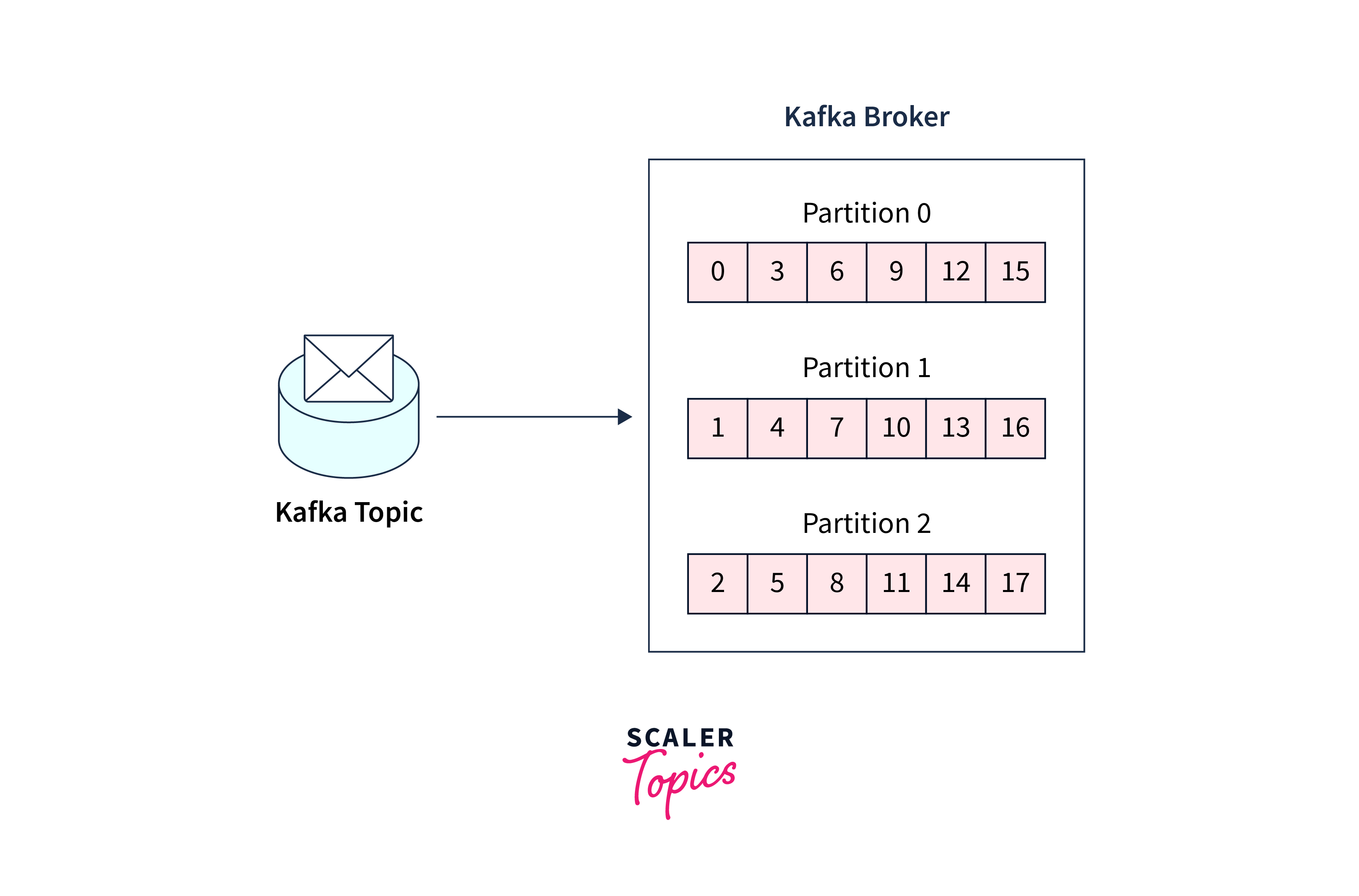 The topics of Kafka are grouped into numerous partitions. While a topic is a logical idea in Kafka, a partition is the smallest storage unit that contains a subset of a topic's records. Each partition consists of a single log file to which records are append-only fashion.