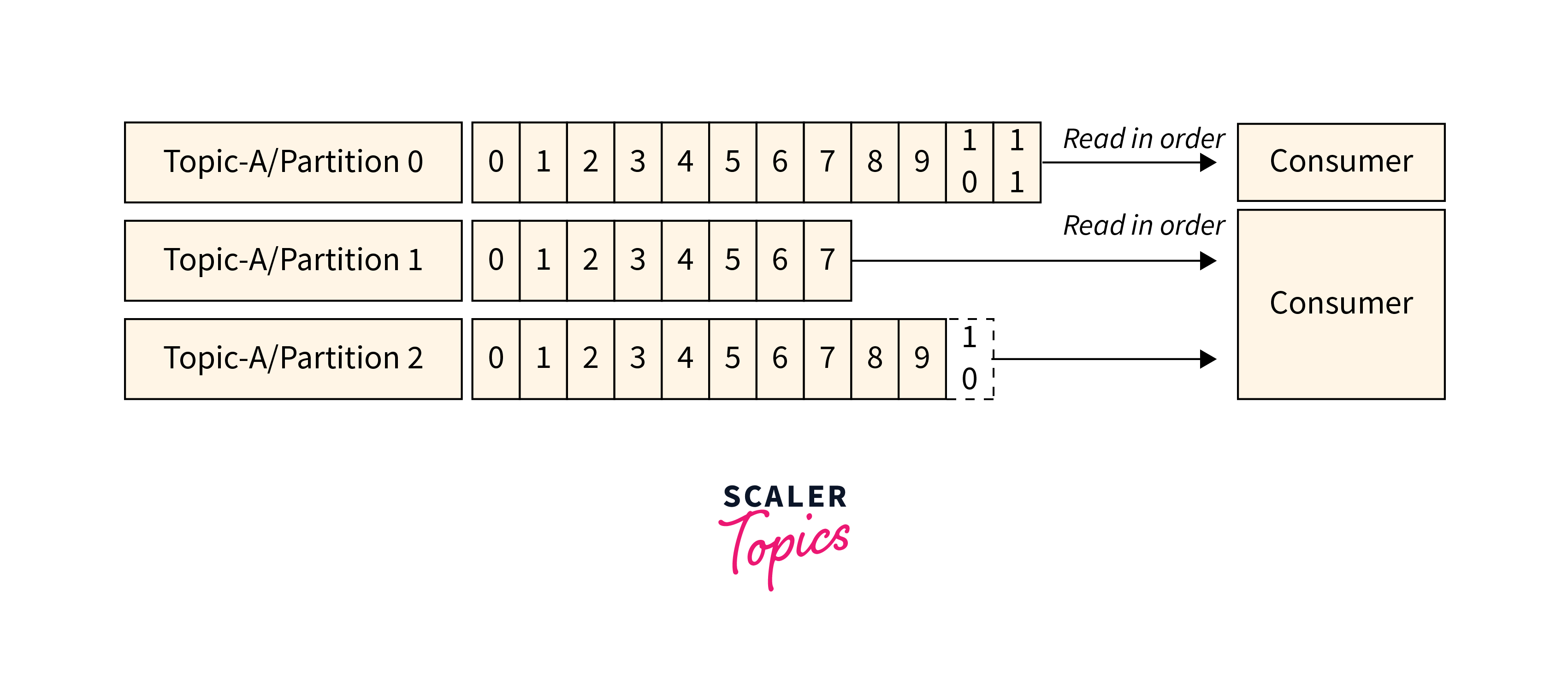 - For example, if a Consumer consumes from Topic-A/Partition-0, it will read messages from 0 to 11 in sequential sequence.