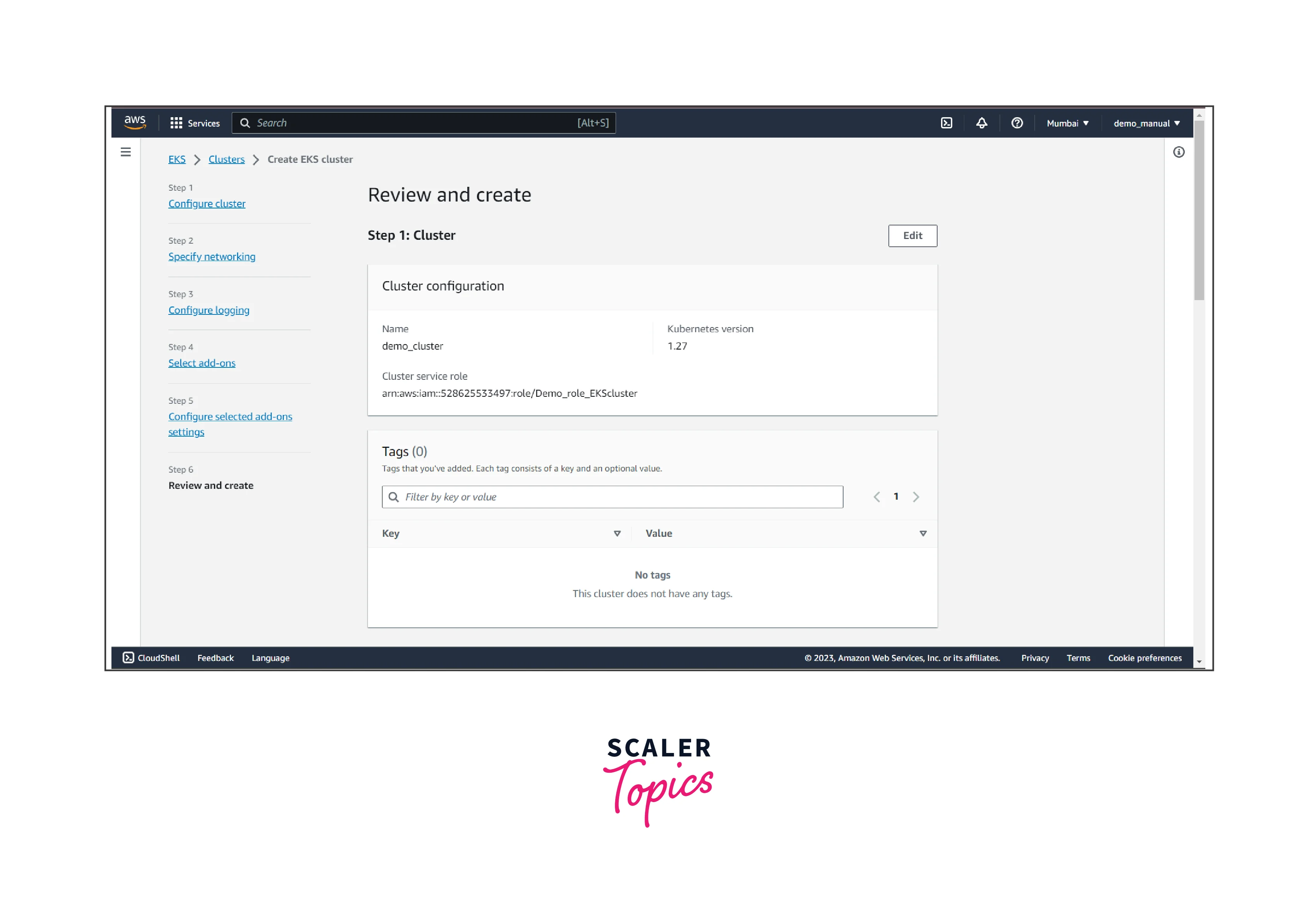 Tags (Optional): Add any tags you want to associate with your cluster.