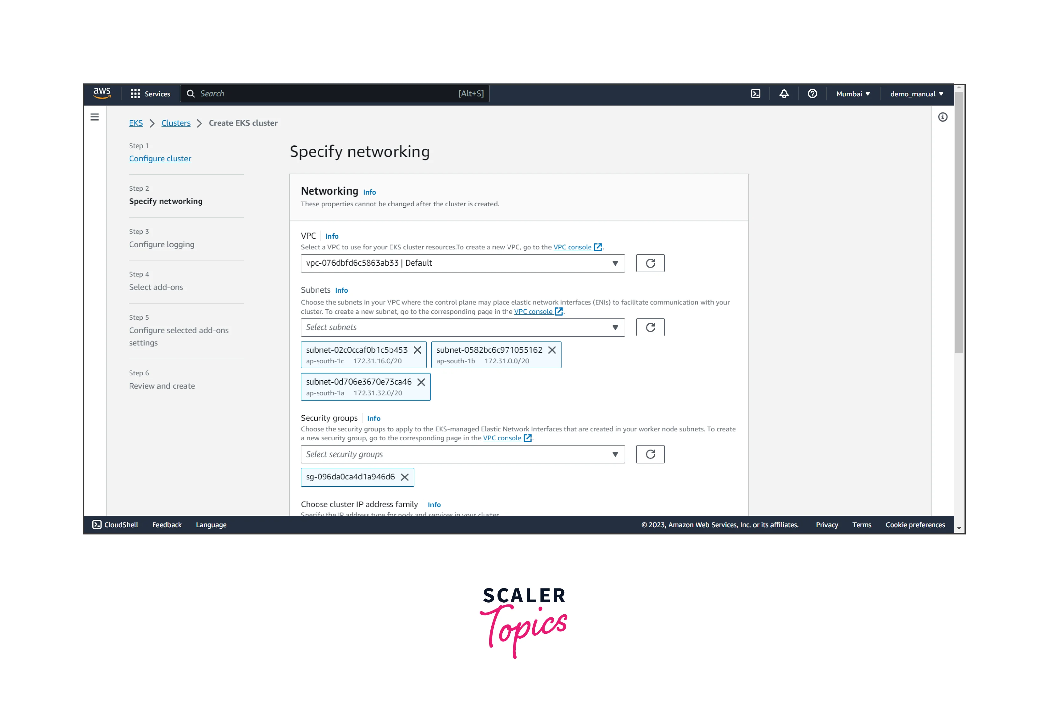 Choose the VPC where you want to deploy your EKS cluster. - Subnets: