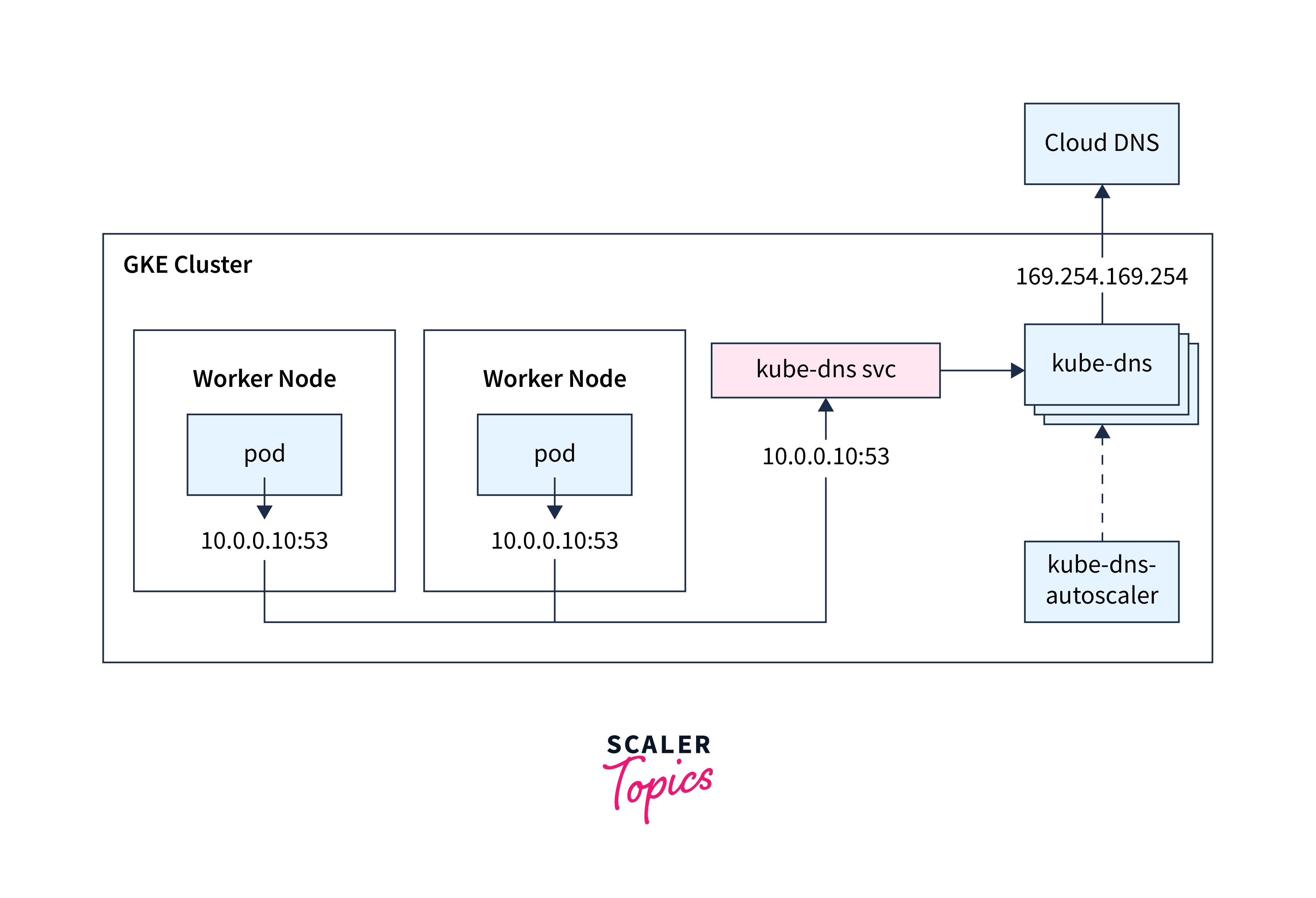In every Kubernetes cluster, a DNS service is provided, ensuring that each pod and service becomes discoverable through this Kubernetes DNS service.