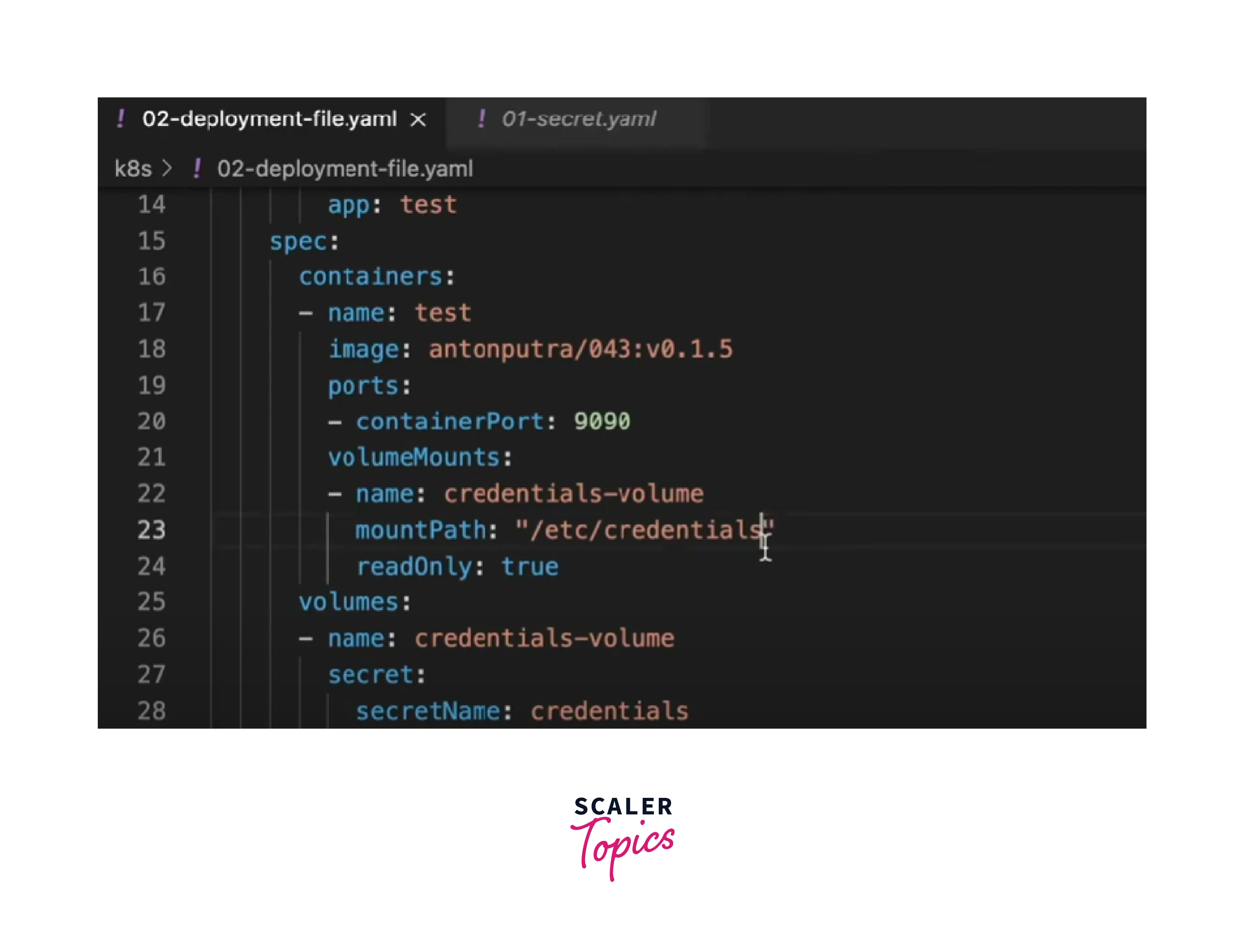 - Volumes: Secrets can also be mounted as files in pods. This approach enables applications to read the sensitive data from files, again avoiding direct exposure in the application code.
