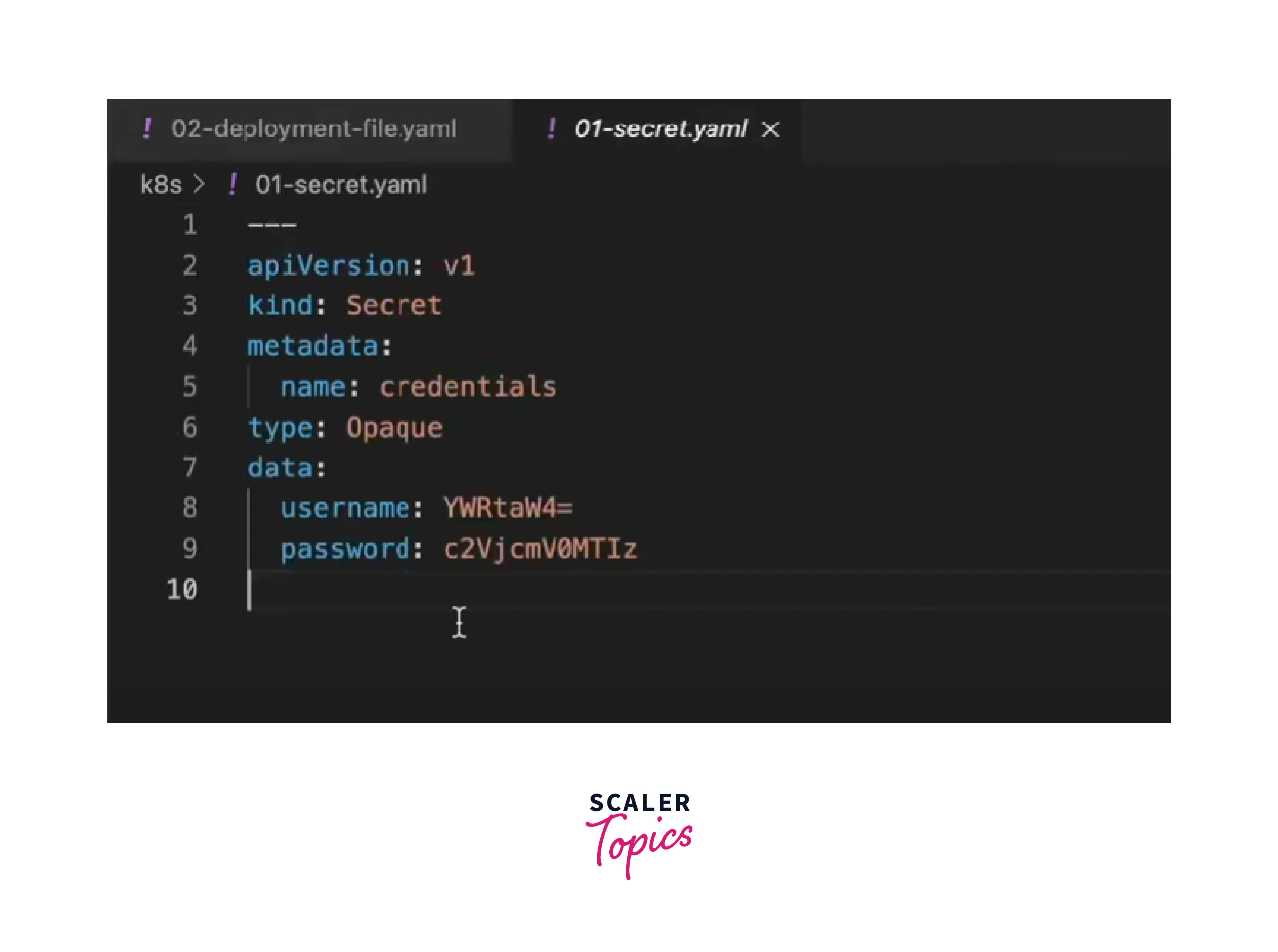 - Create a Secret: Assume you have an API key that the web application needs for authentication. You want to store this API key securely using a Kubernetes Secret.