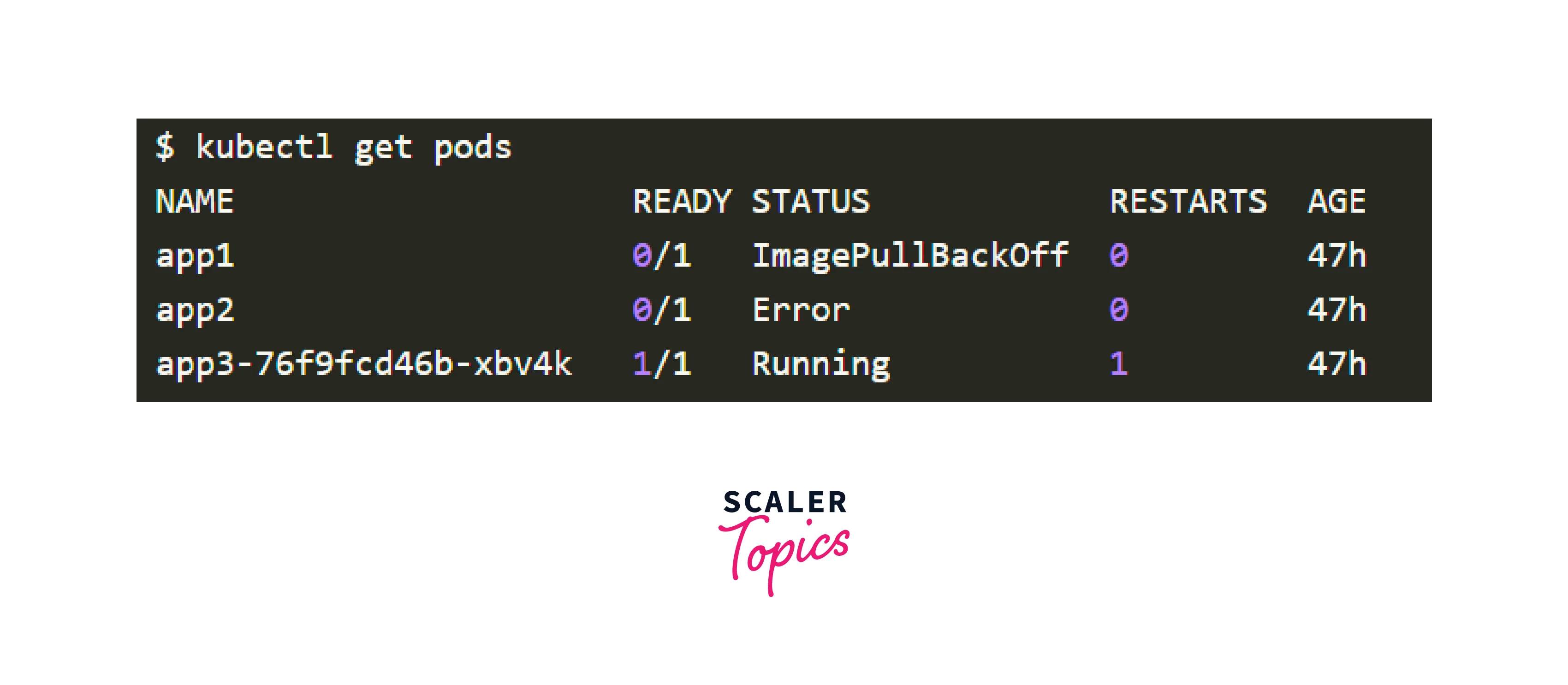 The final Pod in the output above is Running and Ready, but the first two Pods are neither Running nor Ready.