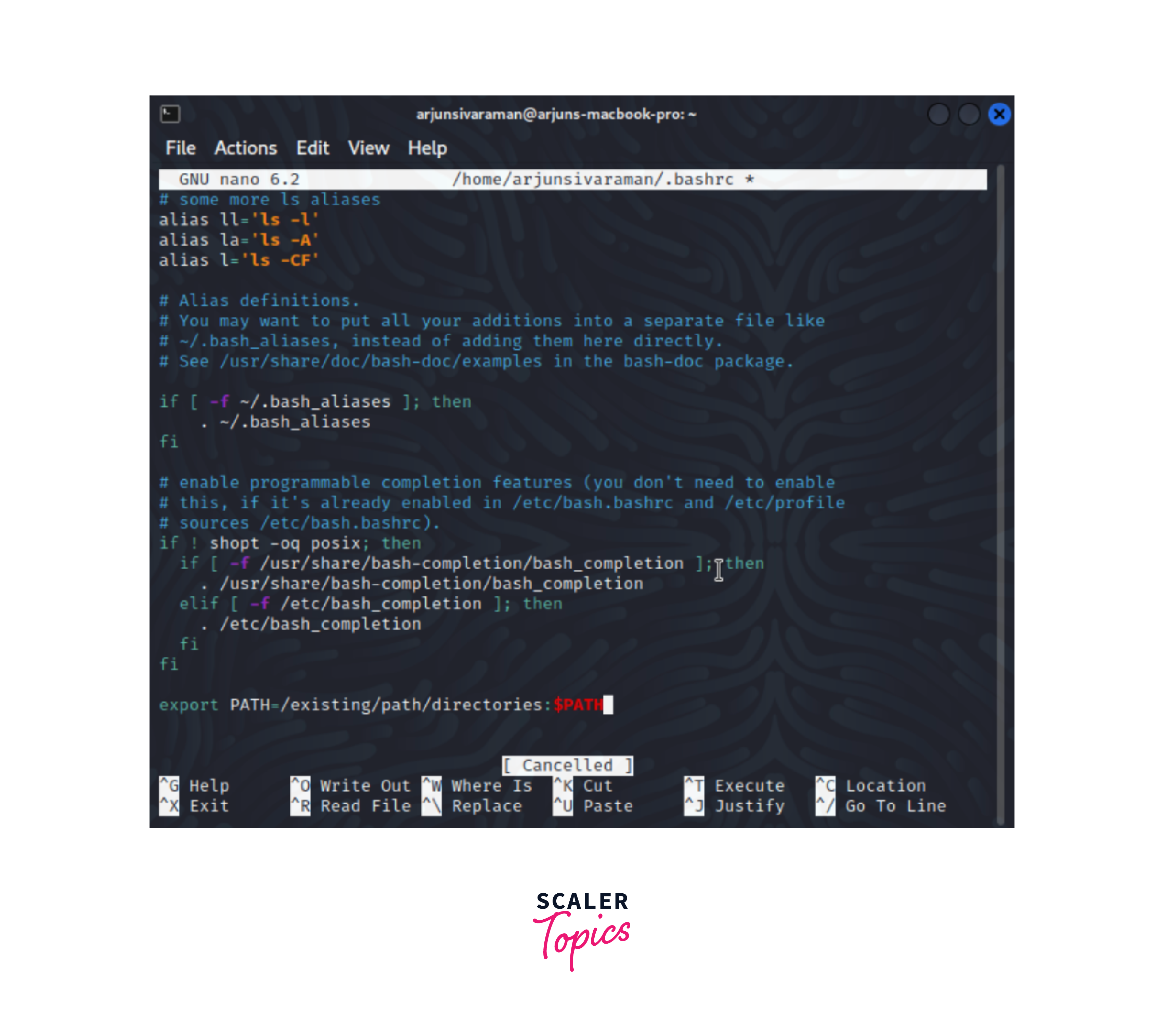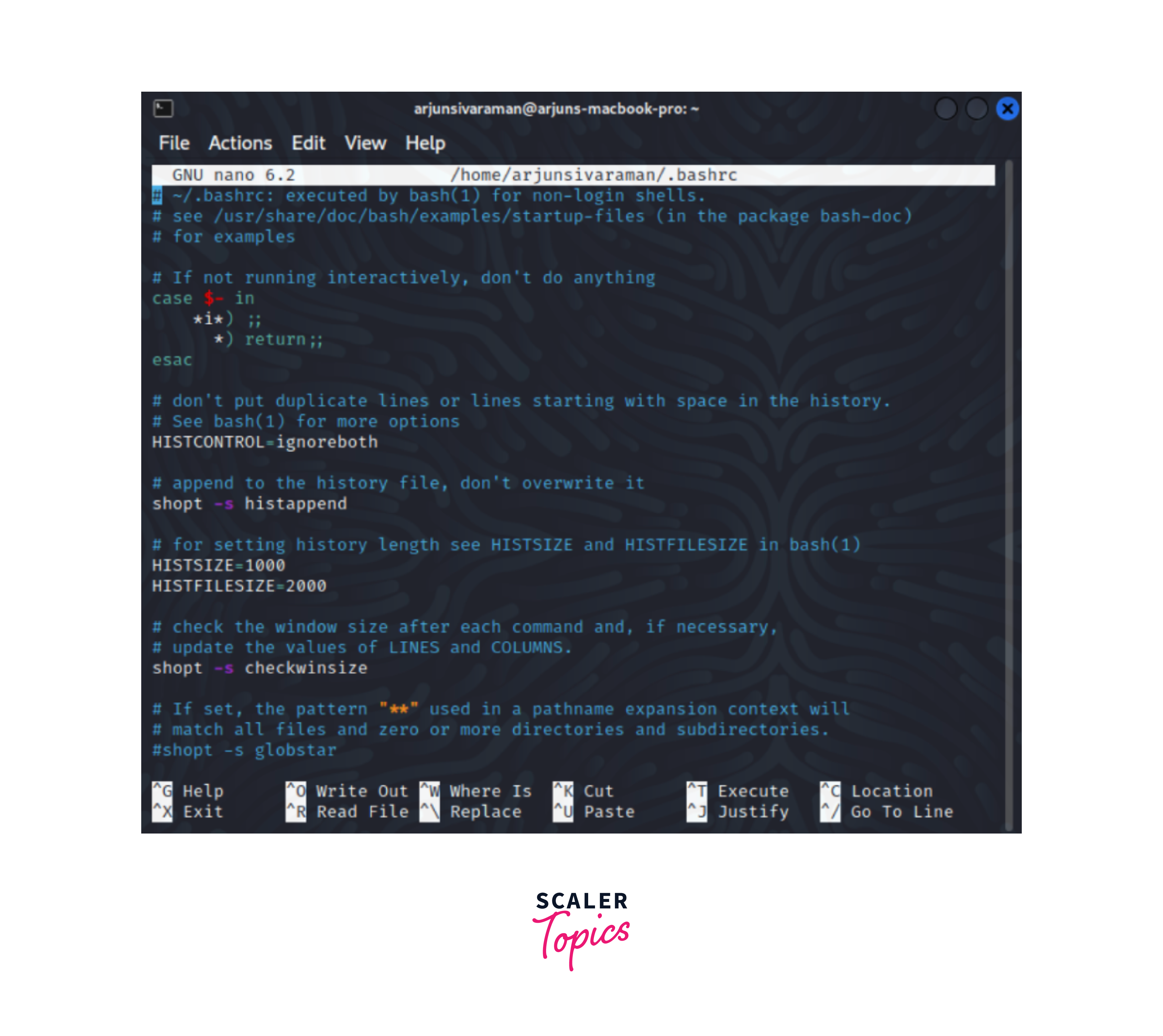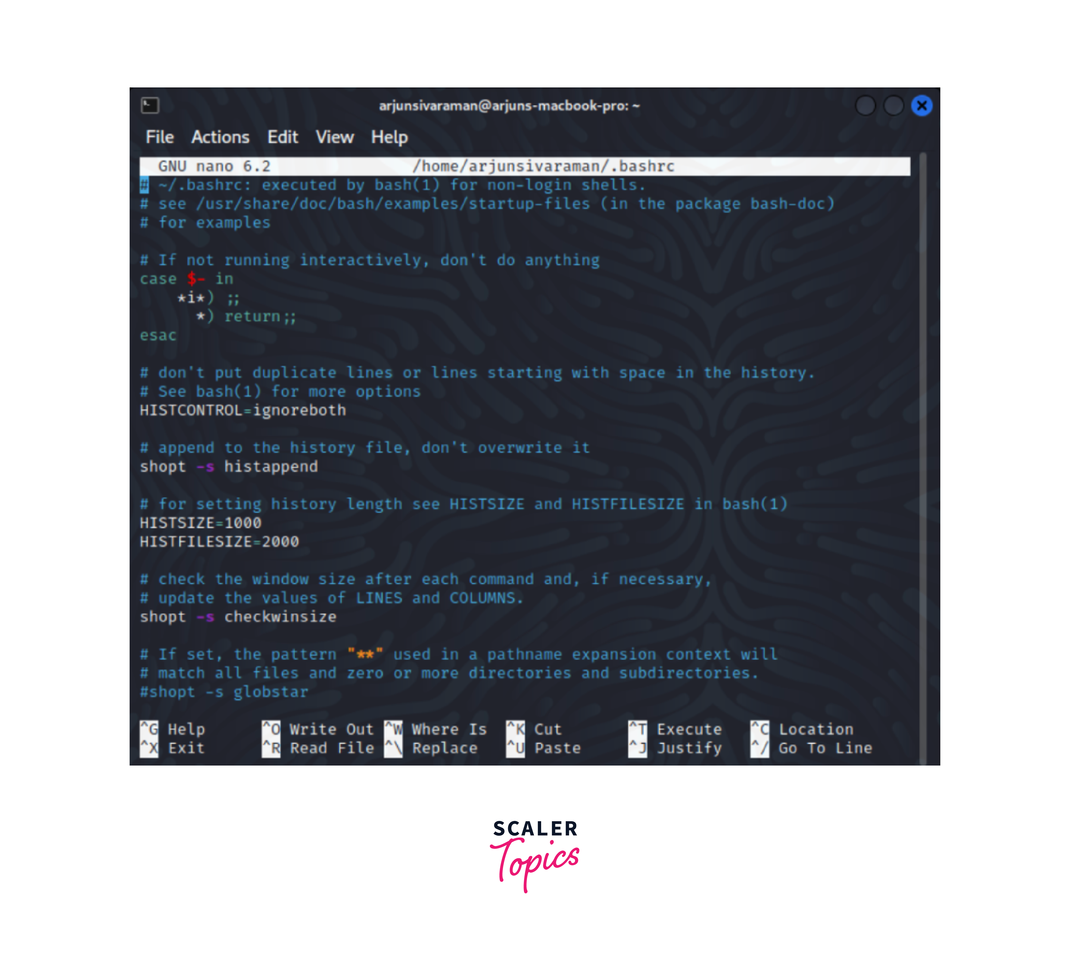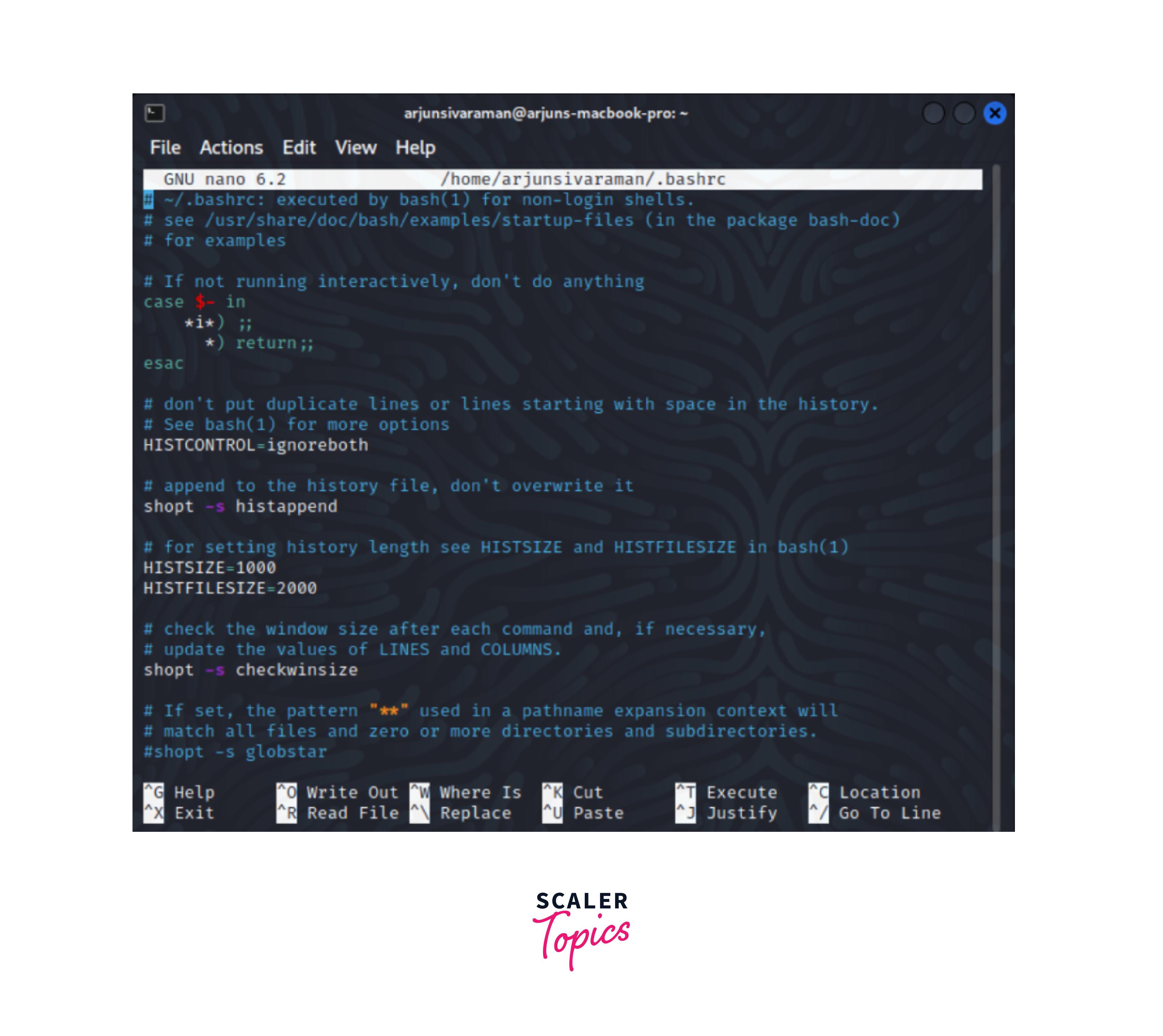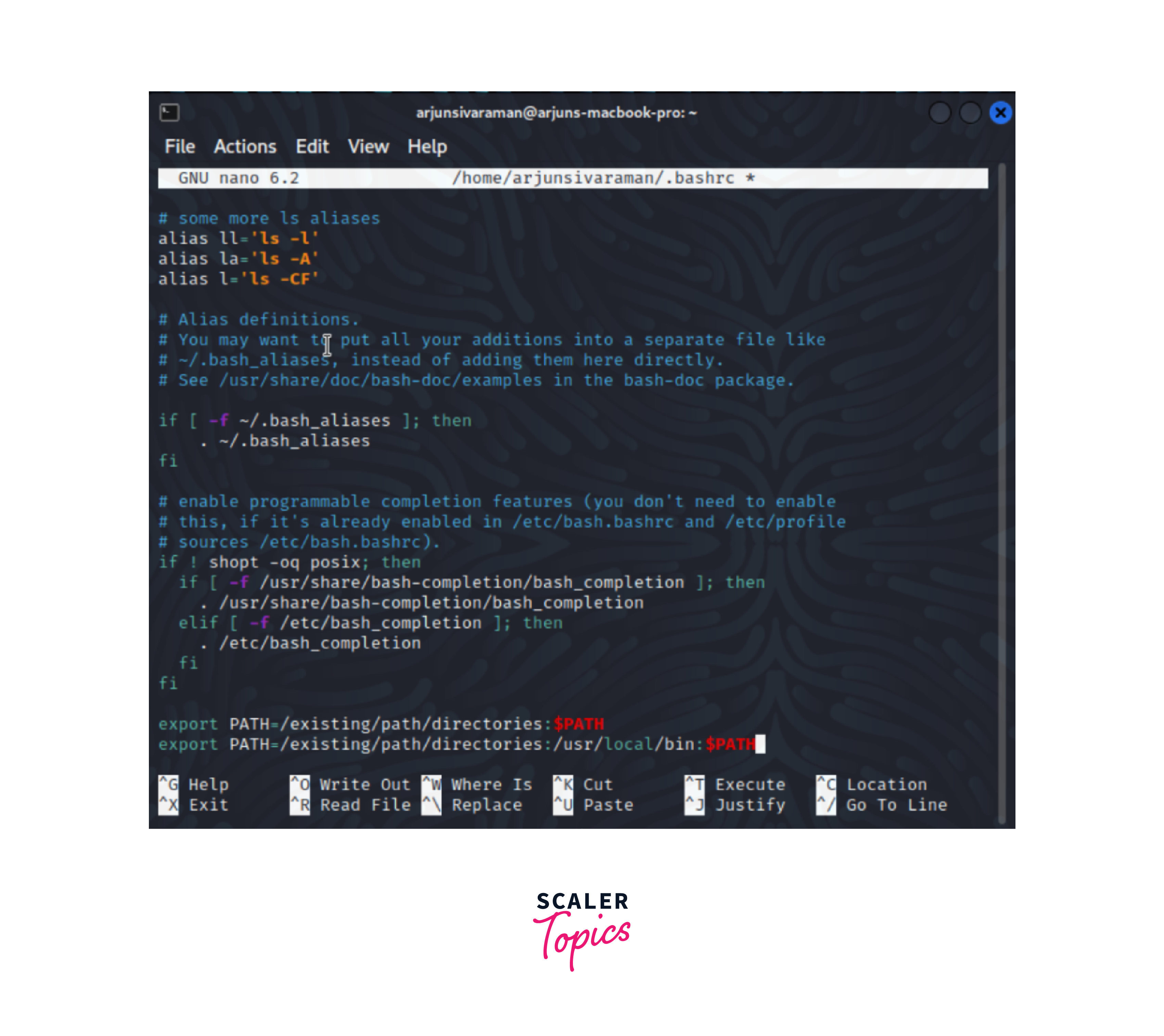 - Edit the shell configuration file: Use the following command to open the .bashrc file in the nano text editor: