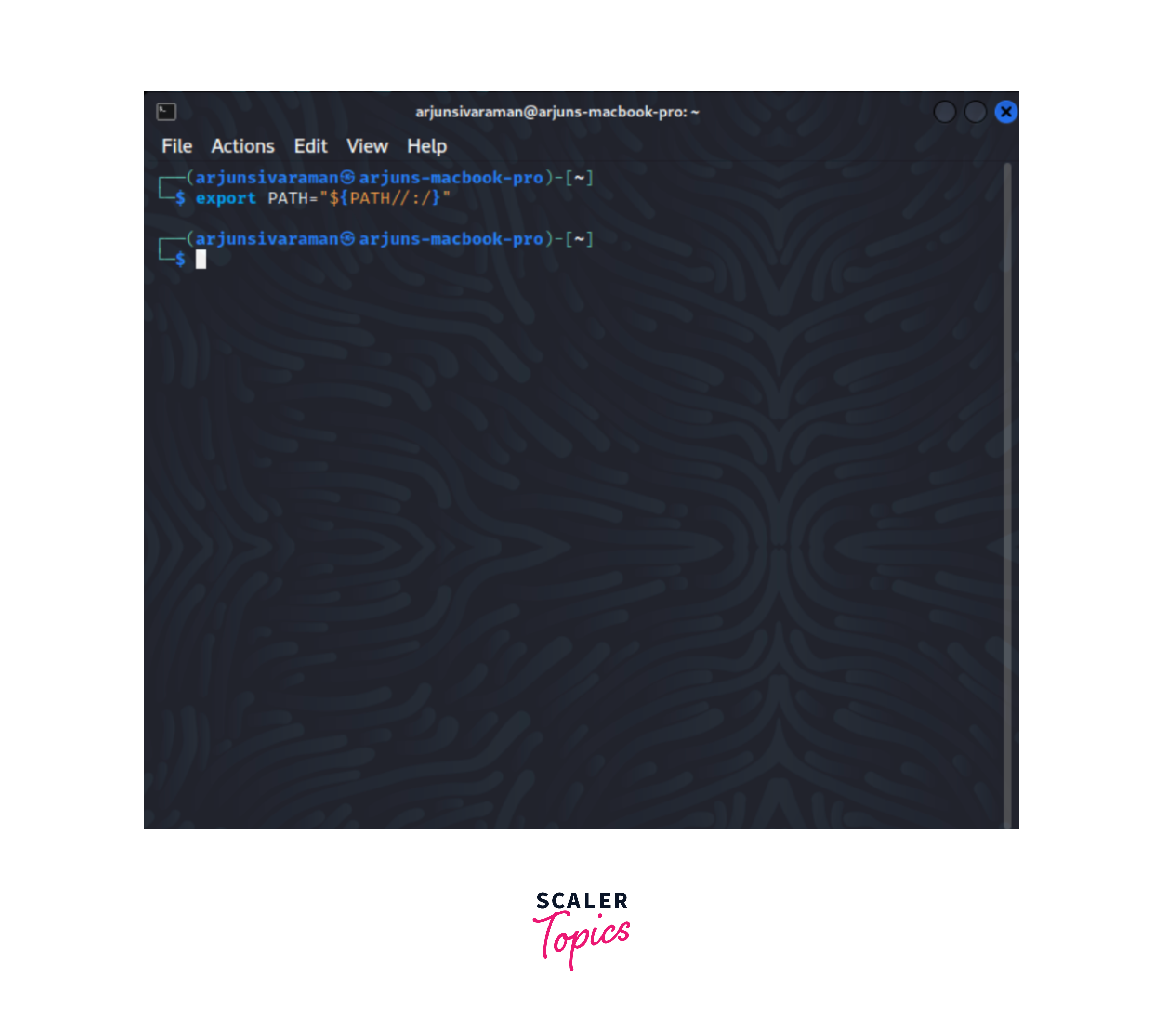- Run the following command to assign the PATH variable with an updated value that excludes the directory: