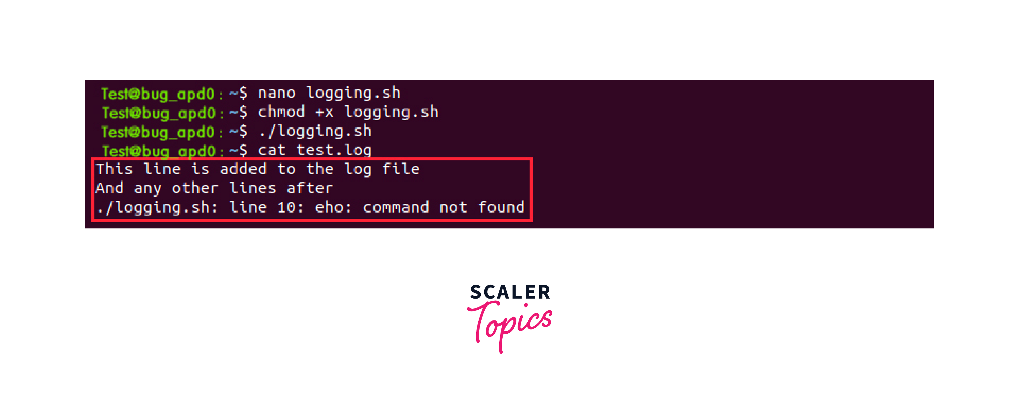 You can utilize the exec command to generate logs and point to the file descriptors. The procedures listed below will show you how logging functions: