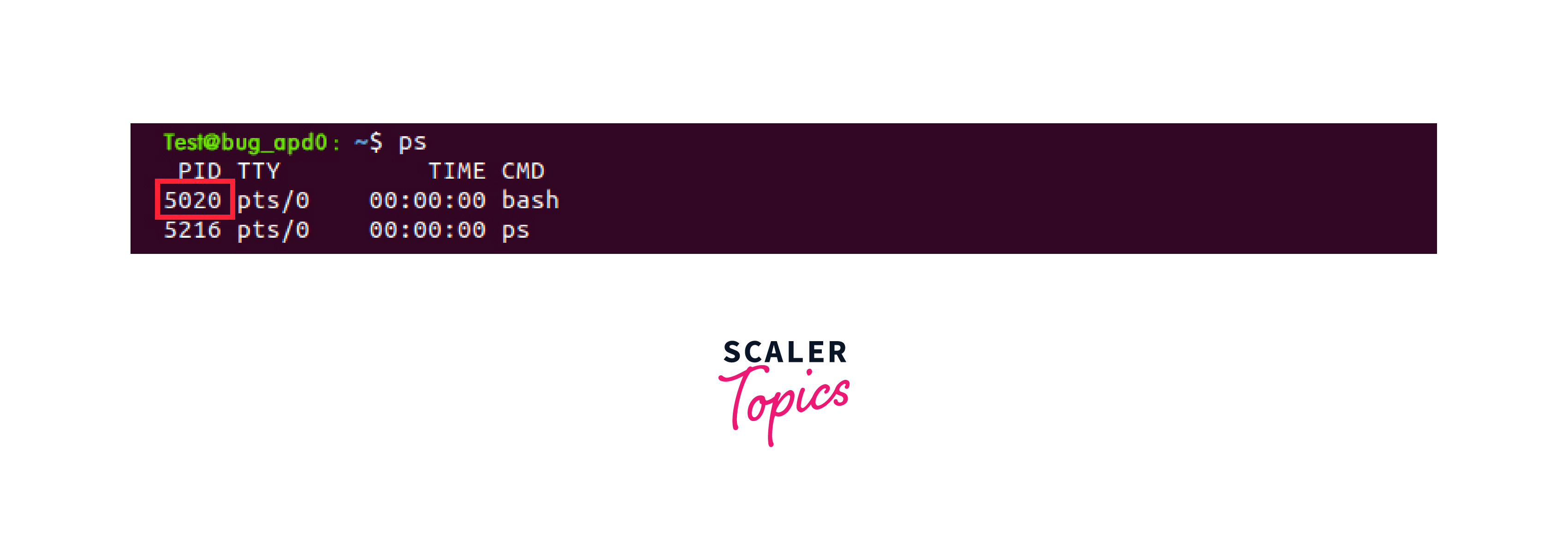 The ps command and the currently active Bash shell are displayed in the output. The PID for the Bash shell is special.