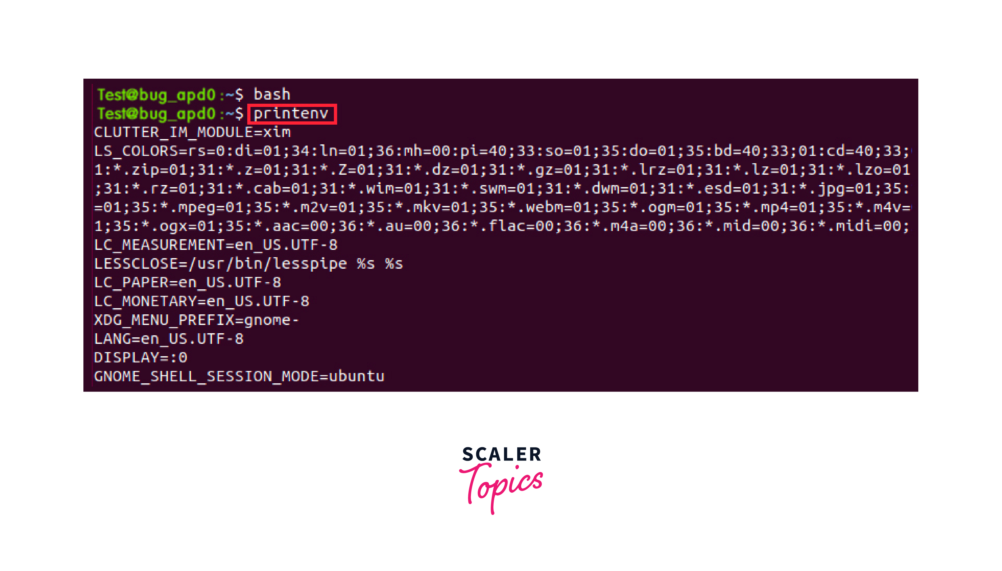 There are no variables that write to the terminal while the command printenv is running in a clean environment. To execute commands or scripts in sterile conditions, use the -c option.
