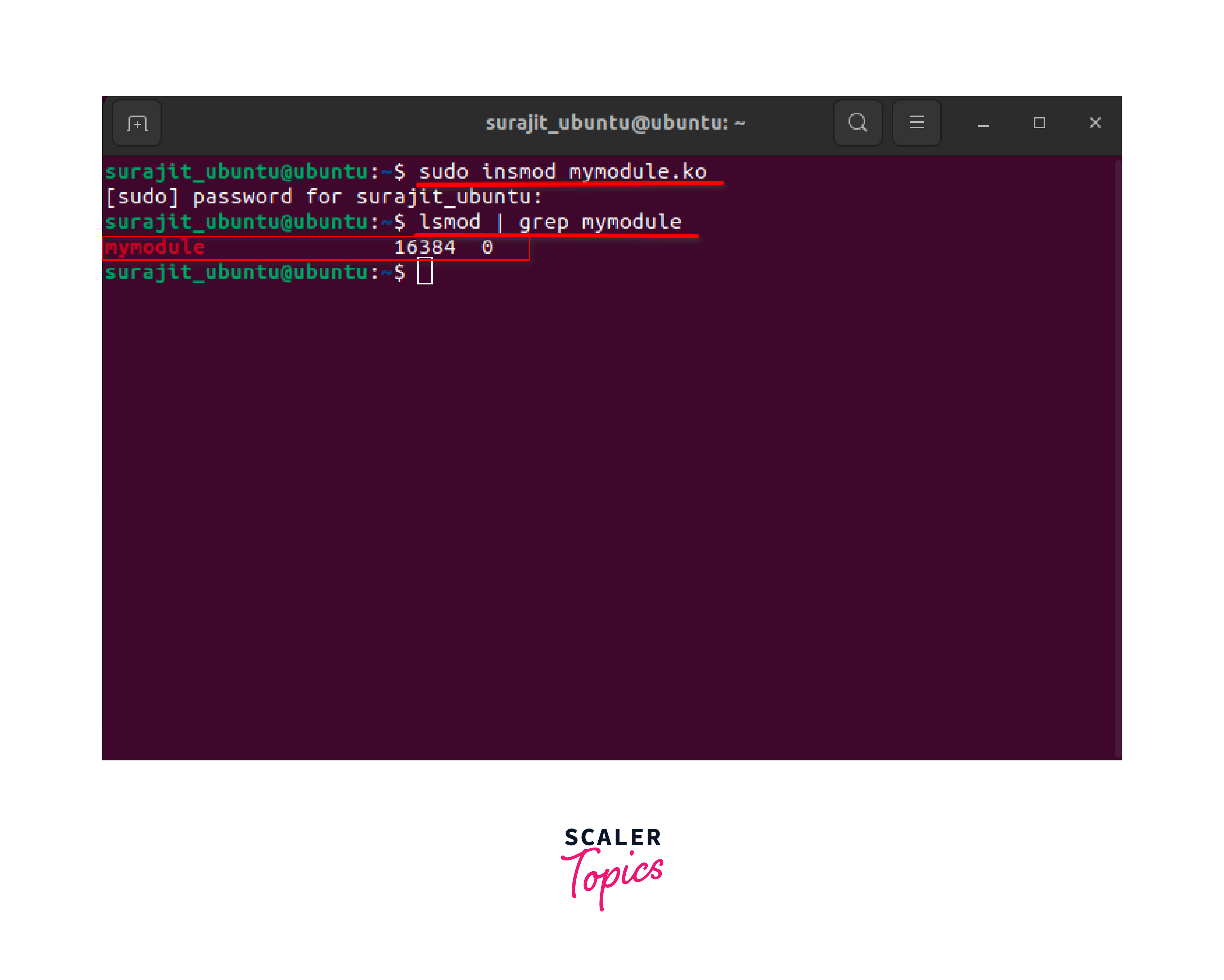 It's important to note that working with kernel modules requires administrative privileges (sudo) as loading and unloading modules directly affect the kernel's functionality. Additionally, it's crucial to carefully test and validate kernel modules before using them in a production environment to ensure system stability and security.