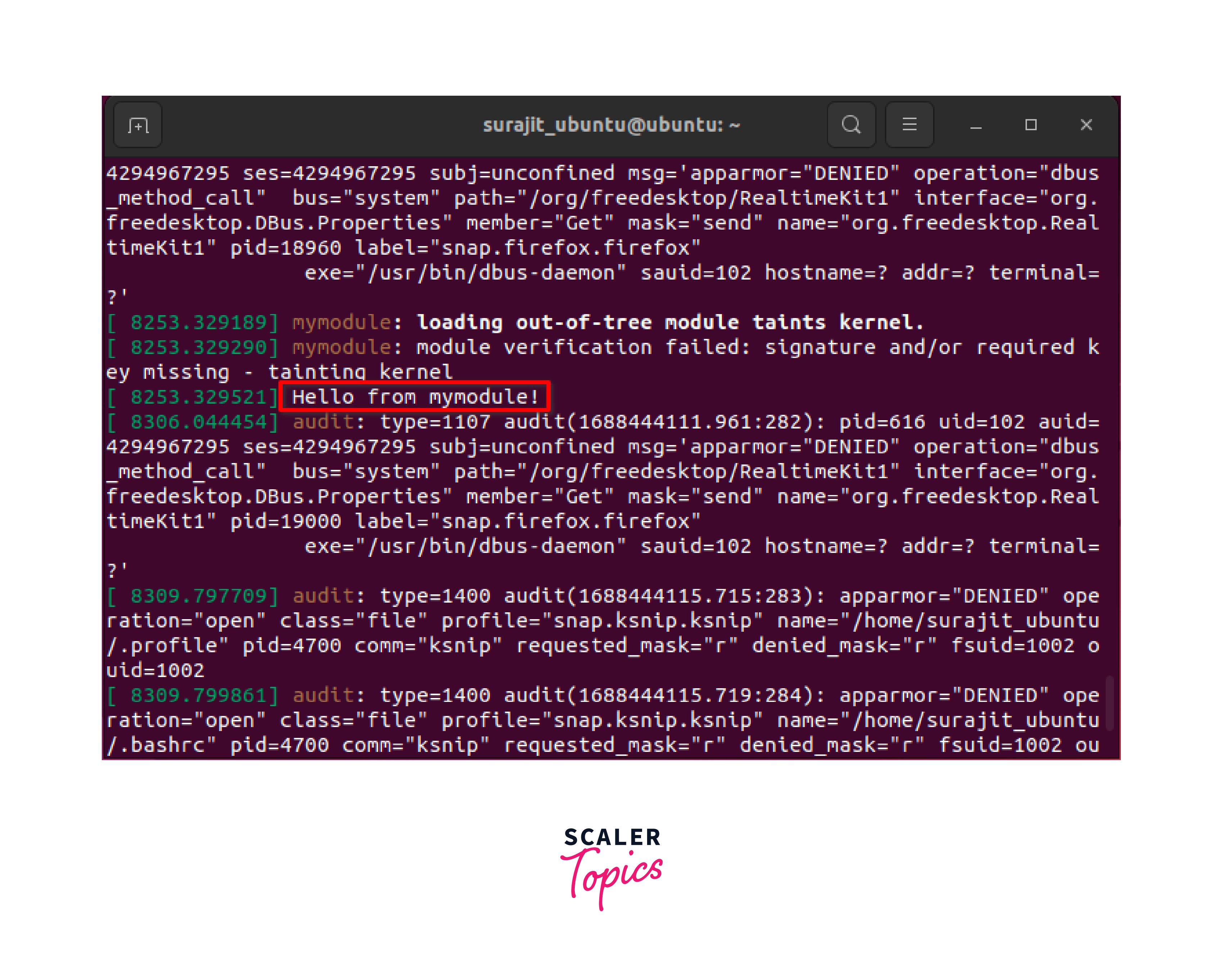 Now, Let's check out an example of a simple kernel module that prints a message when it is loaded and unloaded:
