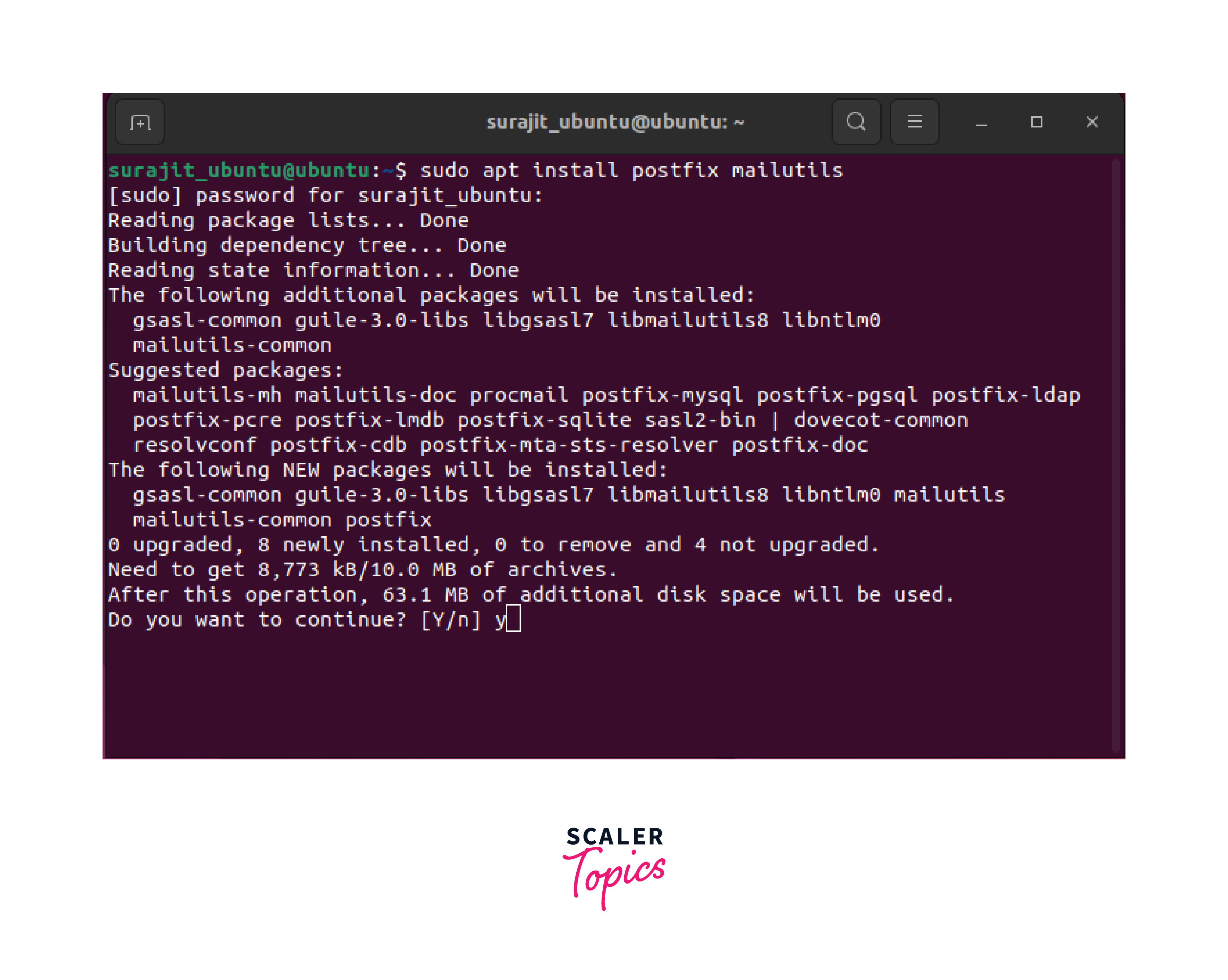 Step 2: Install the necessary software components for your email server. This typically includes the Mail Transfer Agent (MTA), Mail Delivery Agent (MDA), and Mail User Agent (MUA). For example, you can install Postfix as the MTA, Dovecot as the MDA, and Roundcube as the MUA. We will showcase the steps for installing Postfix.
