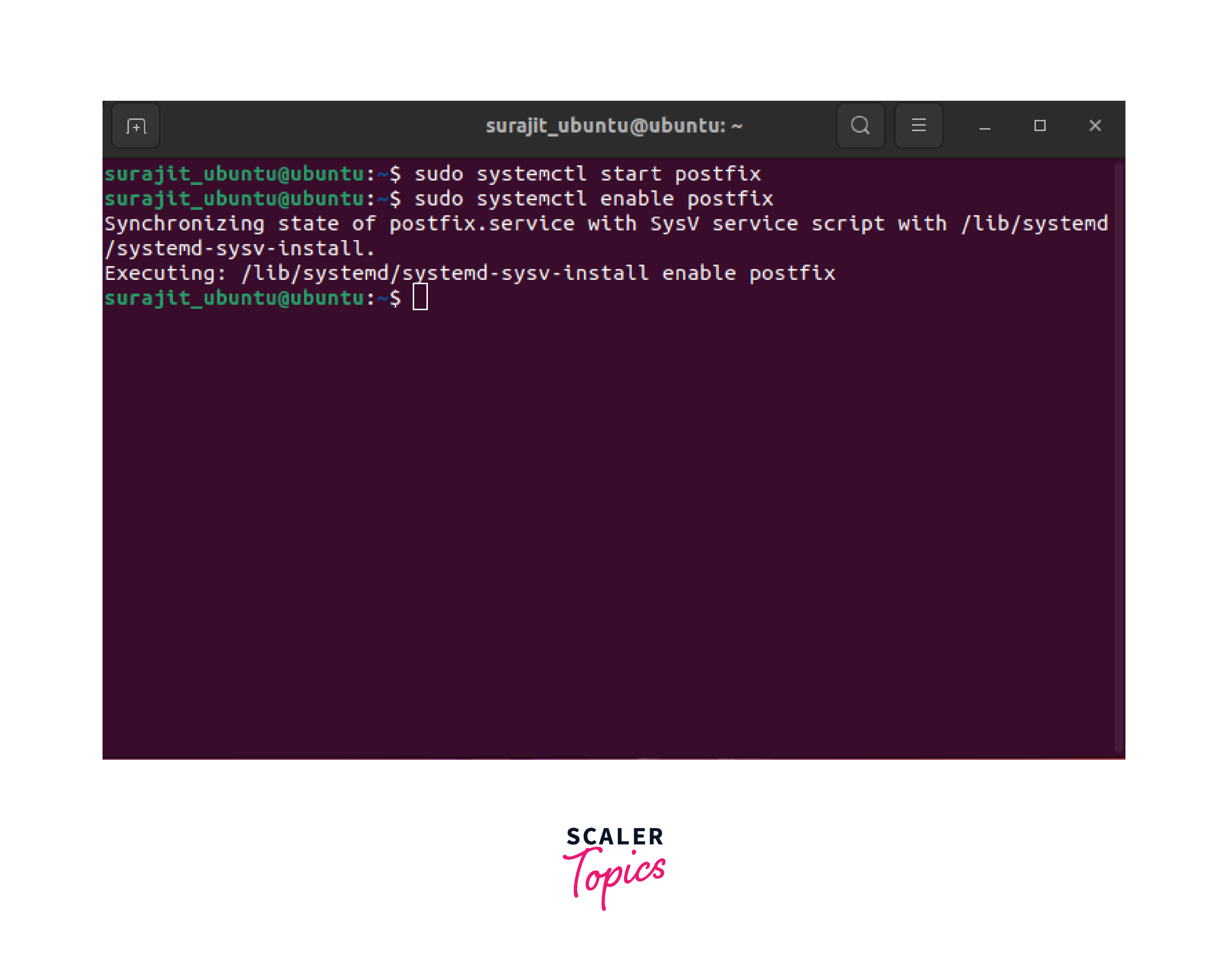 - Then its time to start and enable the Postfix email server to start automatically after system reboots everytime.