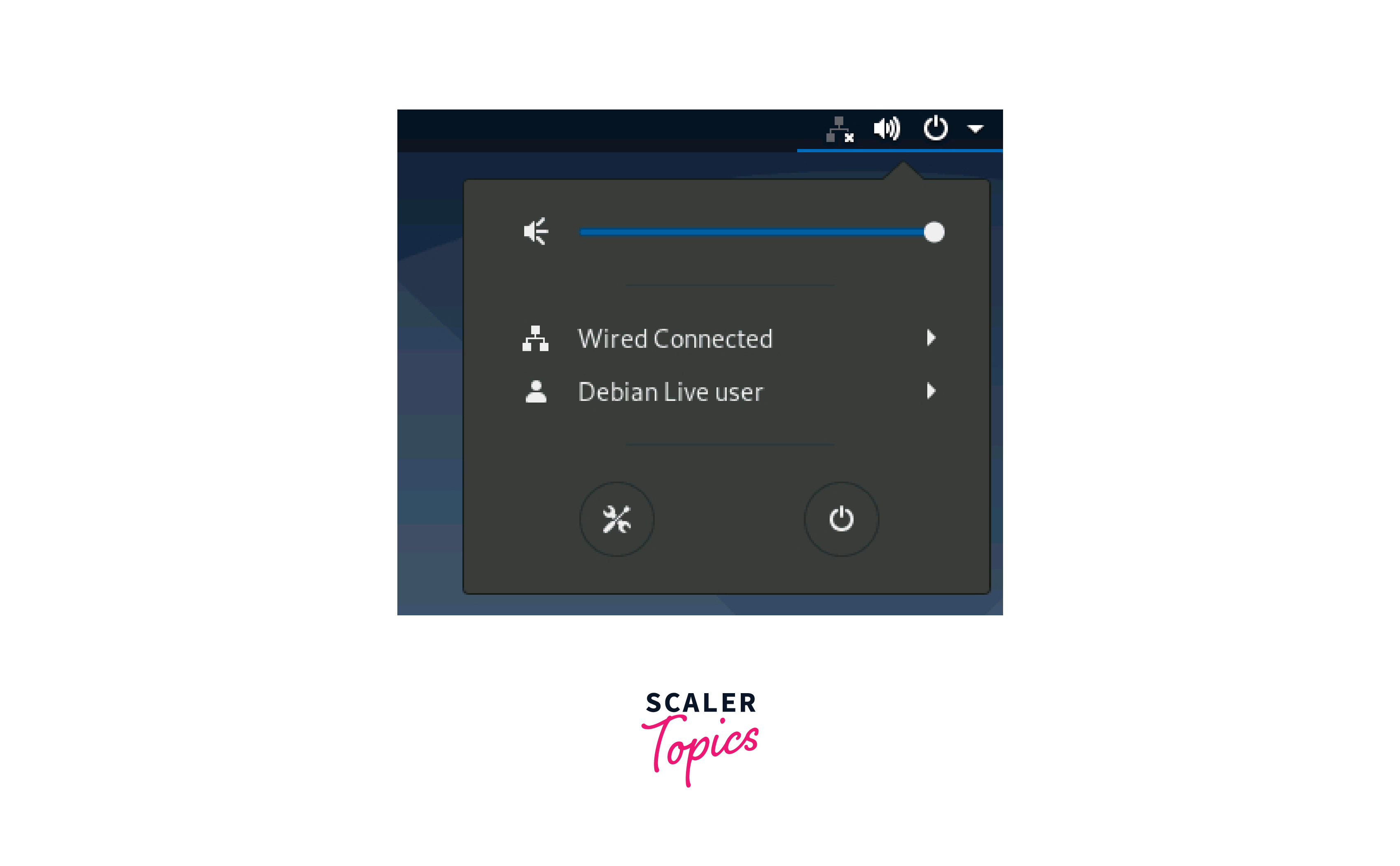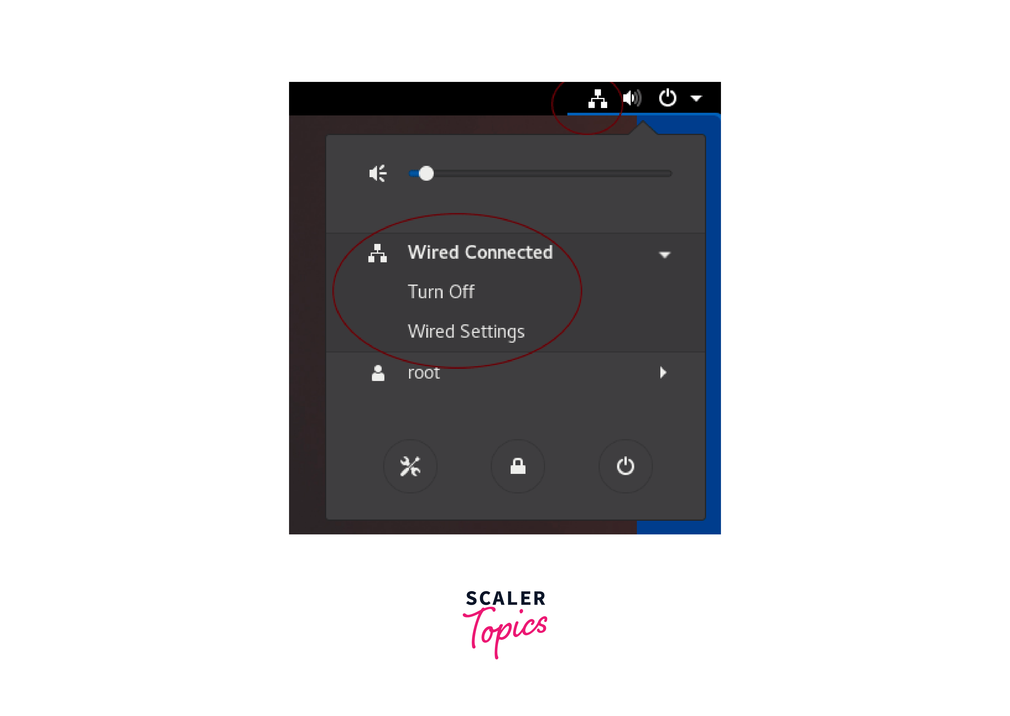 4. NetworkManager Applet: NetworkManager Applet is a system tray icon that provides quick access to Network Manager settings and network connections. It allows users to connect to available networks, view connection status, and access network settings through a convenient GUI. The applet is typically included in desktop environments like GNOME, KDE, and Xfce. It is present in the top right corner as shown below,