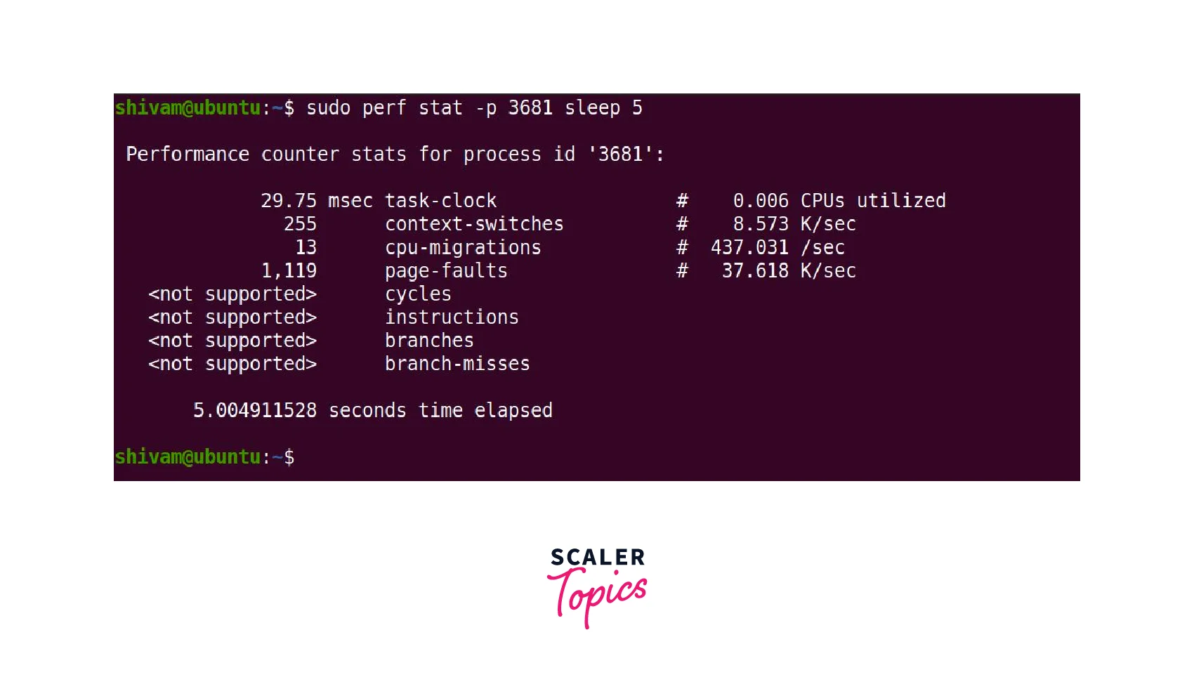 Note:- The Linux perf command may not provide complete results when used on virtualization platforms like VMware or VirtualBox. This is because, unlike KVM or XEN, these virtualization technologies do not allow direct access to hardware counters. It is suggested to use perf on a physical machine or a virtual machine running on KVM or XEN virtualization technologies to acquire the most reliable and accurate results.