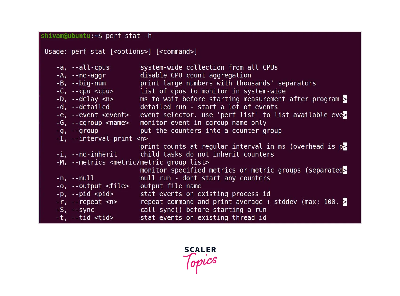- You can gather performance statistics for the entire system, specific commands, or even individual processes by using subcommands such as stat and record.