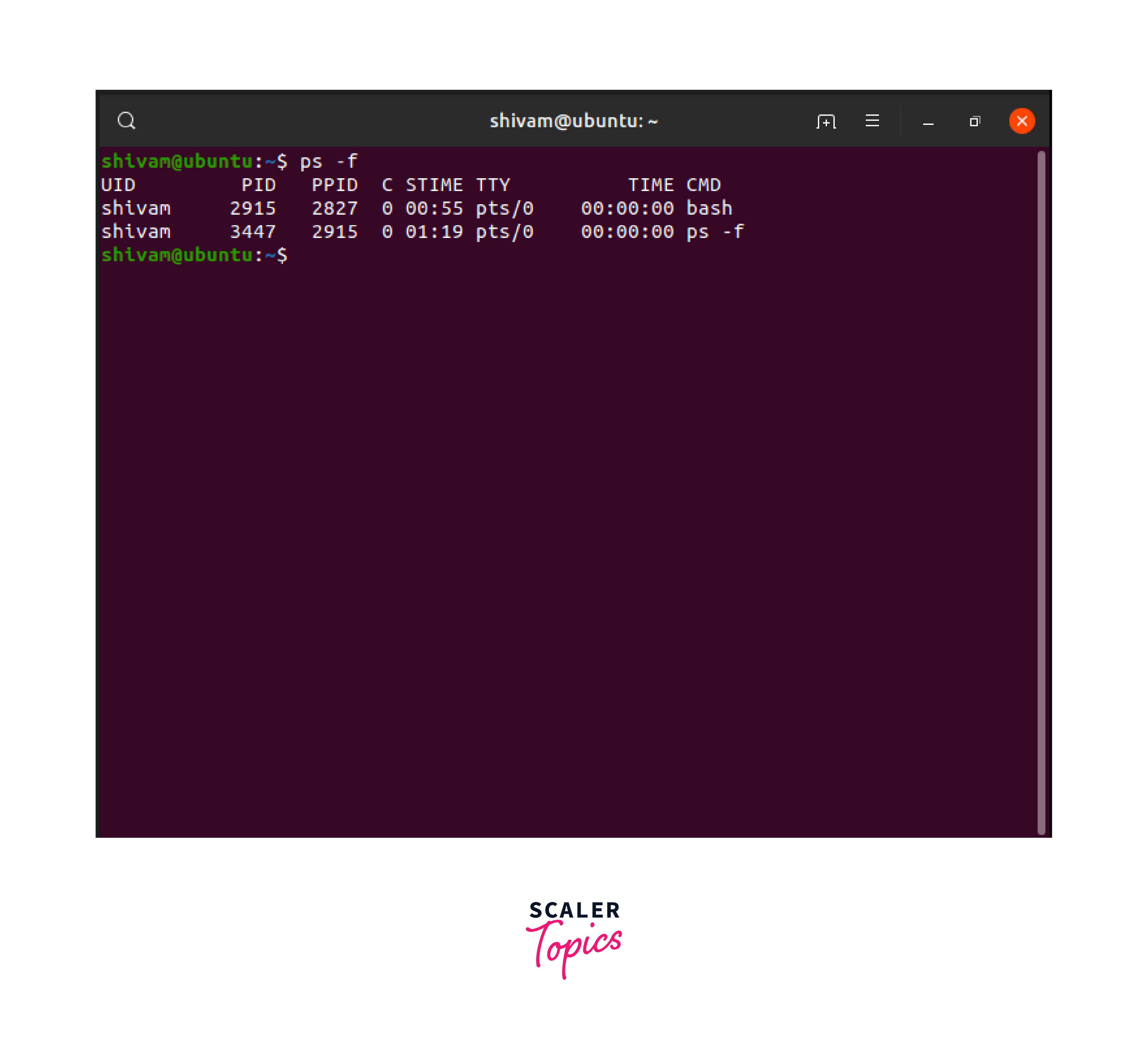 The -f (f for full) option is one of the most commonly used options for the ps command, and it offers extra information, as shown in the following example.