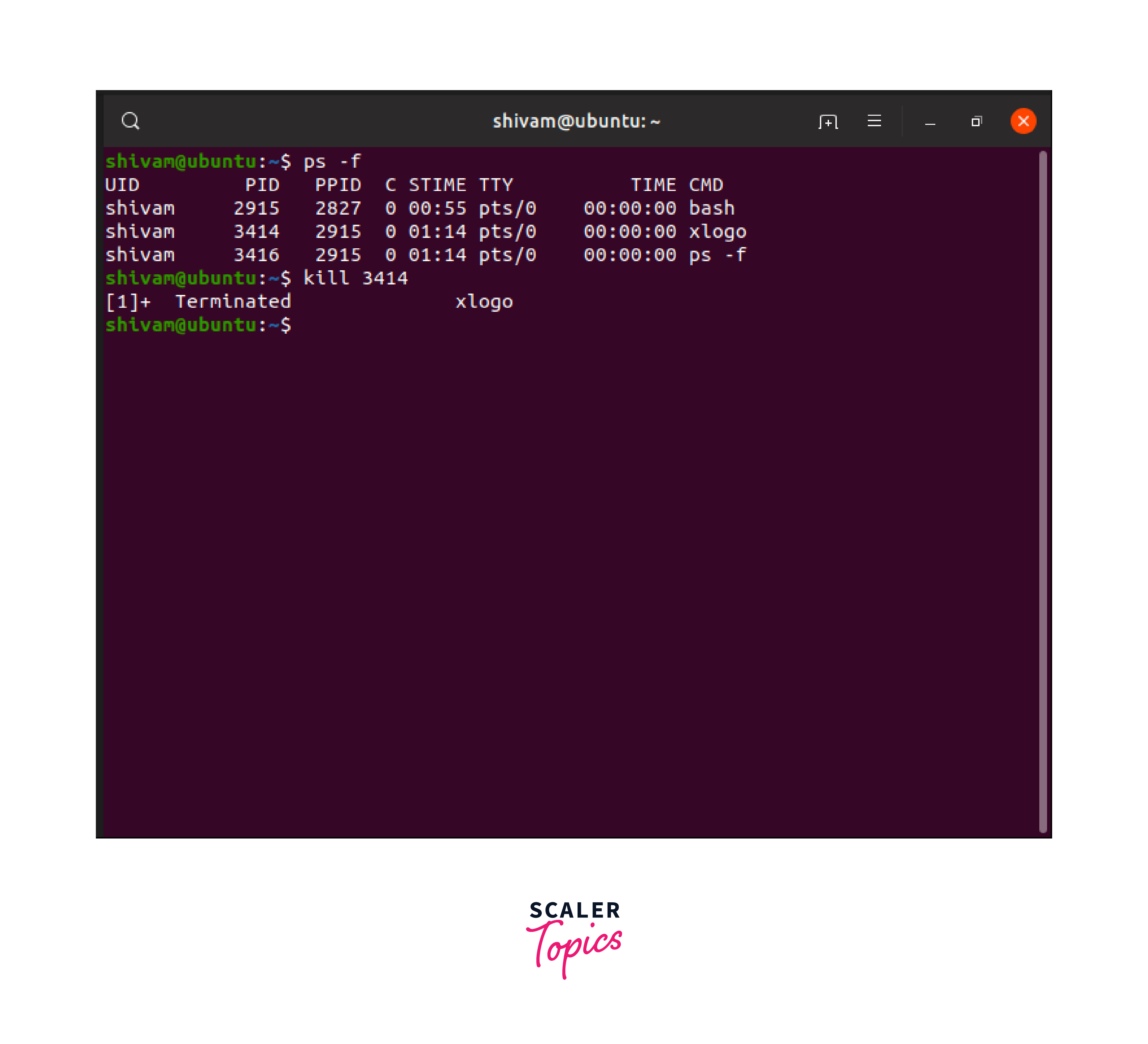 If a command is running in the foreground, you can stop it by hitting Ctrl + C. However, if a process is running in the background, you can get its Job ID using the ps command. Once you have the Job ID, you can kill the process using the kill command.