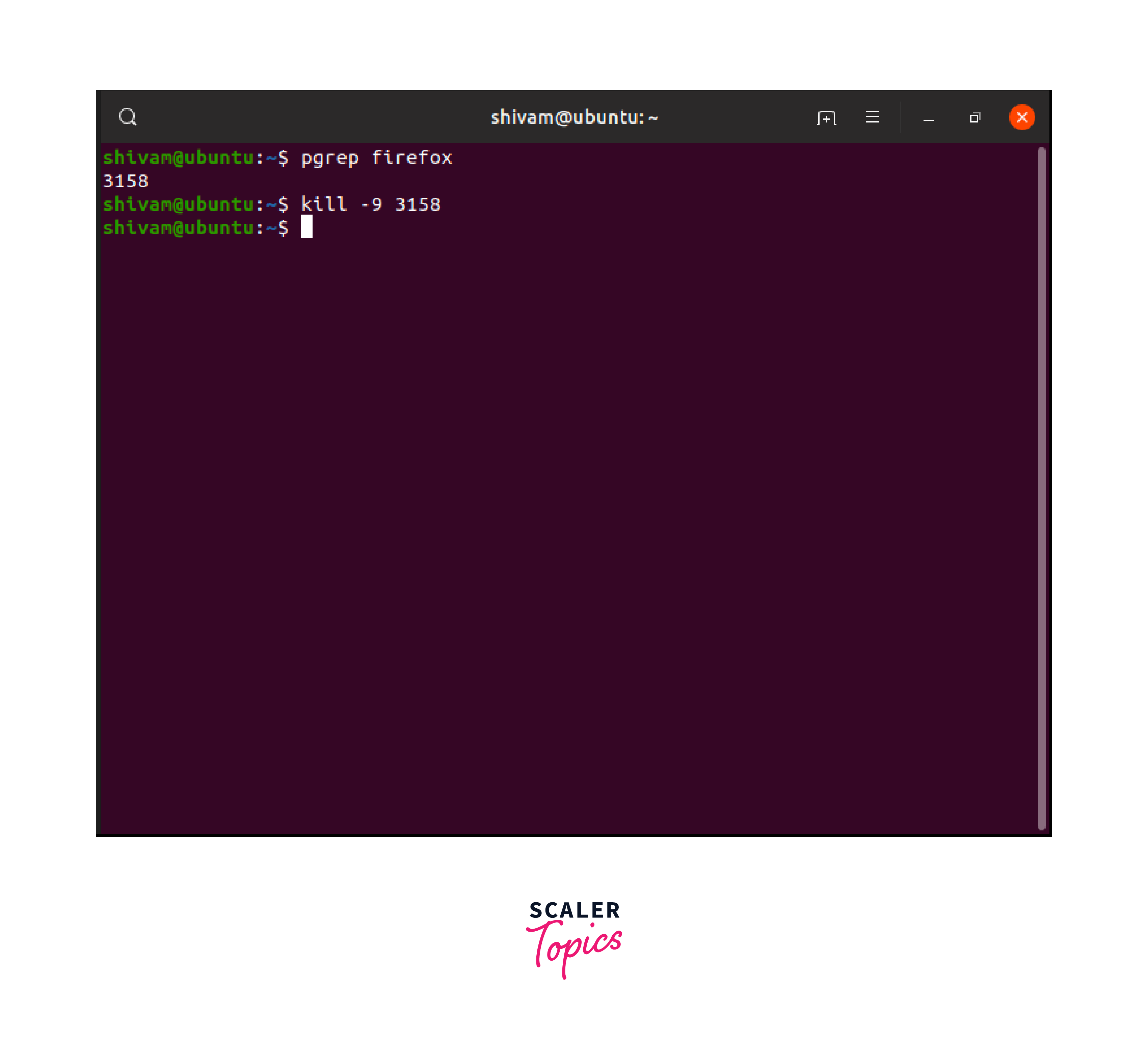 In the preceding example, we used the pgrep command to get the process ID (PID) of the Firefox browser. After getting the process ID, we kill it with the kill -9 11258 command.