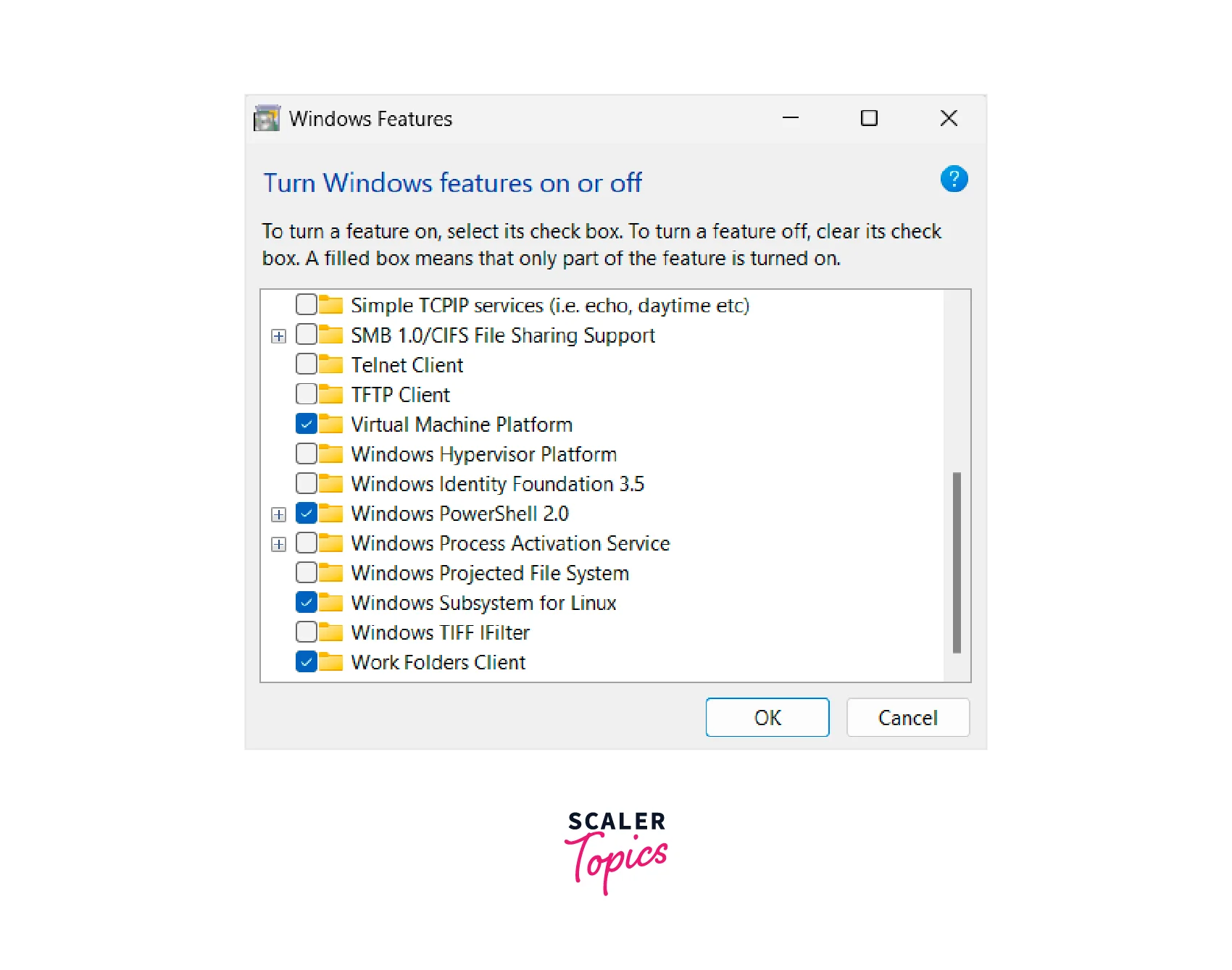 - Check the box next to "Virtual Machine Platform" and click "OK."