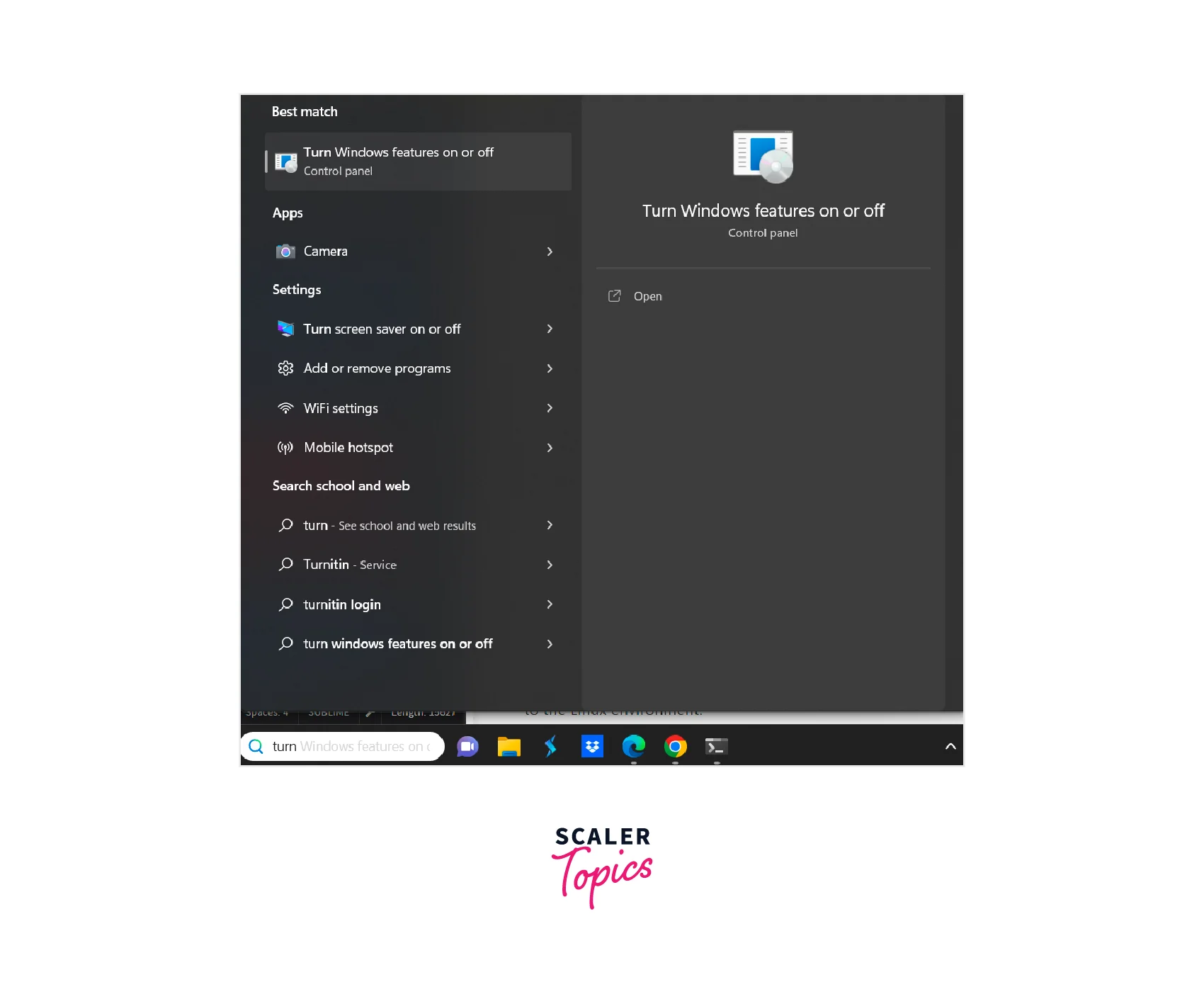The first step is to enable the WSL feature on your Windows system. Follow these steps:- Open the Start menu, search for "Turn Windows features on or off," and click on the corresponding result.