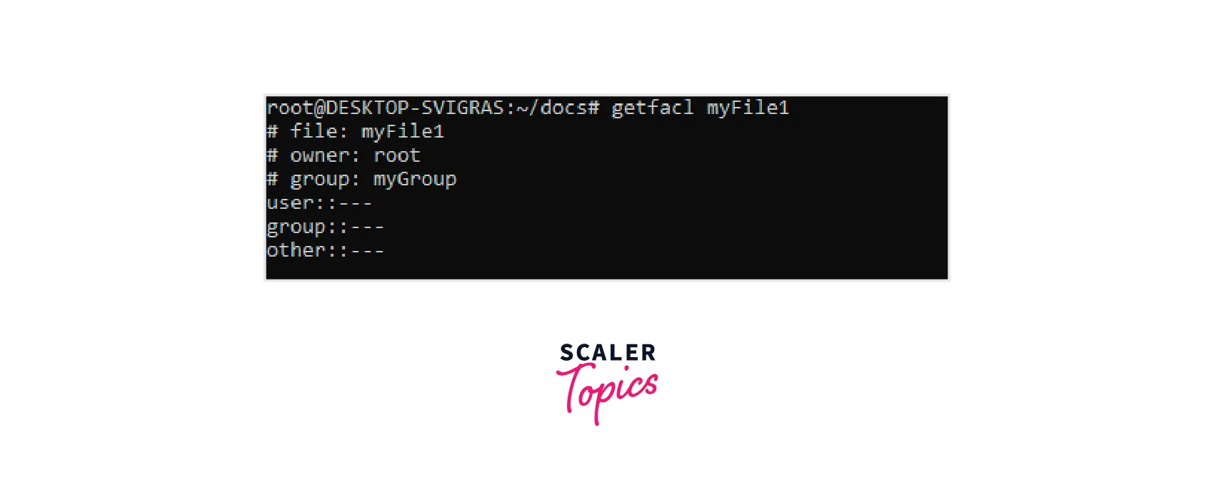 - The user::--- indicates that the file owner (in this case, root) has no permission for reading, writing, or executing the file.