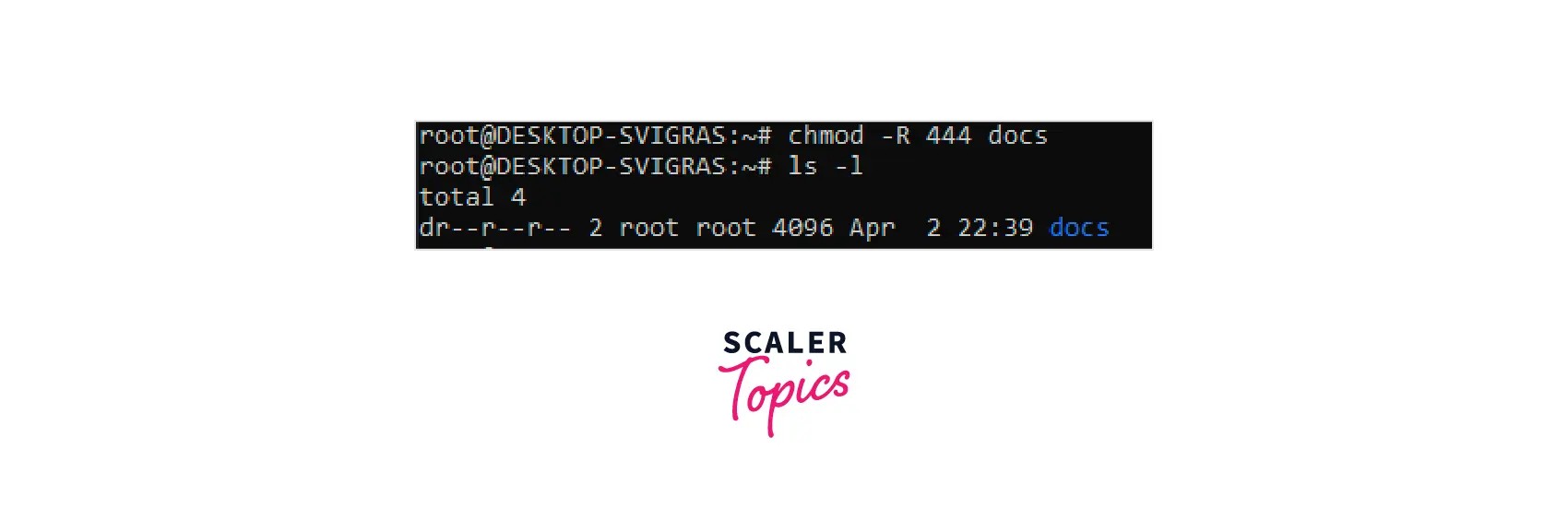- The 444 specifies the permission for all users, including the owner, group, and other users. In this case, all users will have read-only permissions (4 = read).