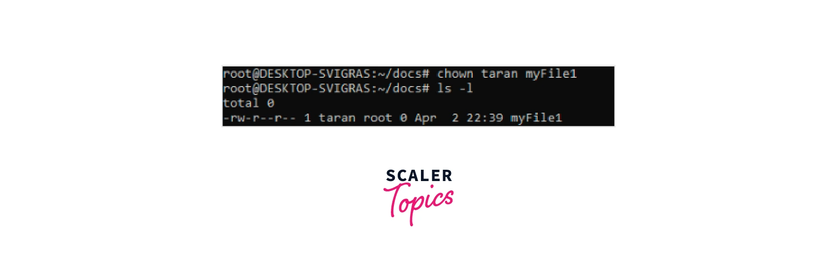 Let us take an example where we are changing the user/owner associated with the file. We will be using the chown command.