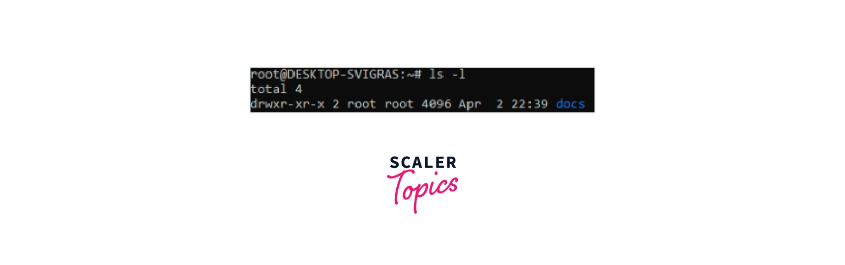 Now, that we know what are ownerships and file permissions in Linux, let's take a look at how can we manage ownerships and groups for a particular file or directory. Let’s take an example for a directory that we have made named docs. First, let's display all the permissions, groups, and owners associated with the directory using the ls -l command.