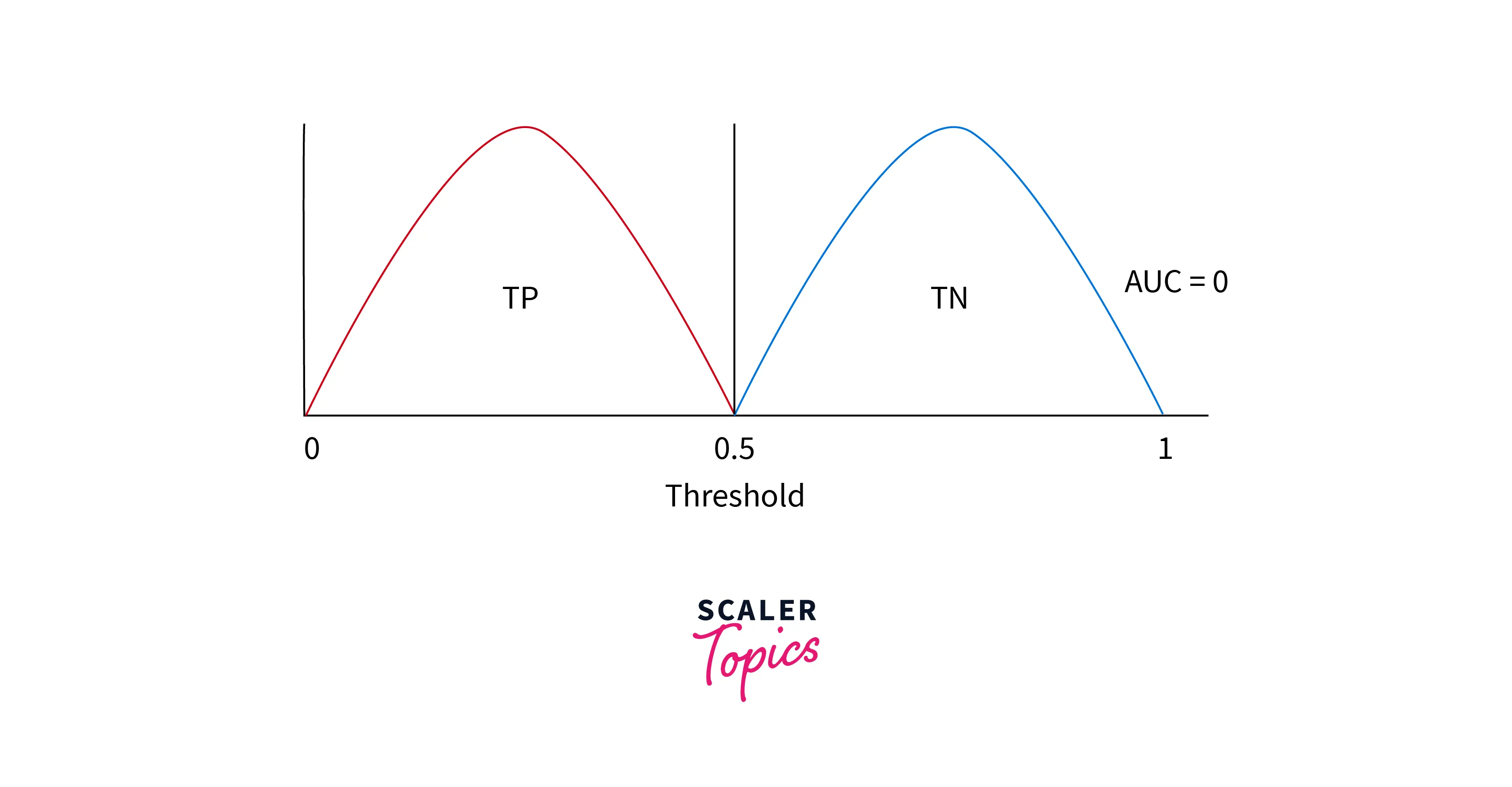 When the area under the ROC curve is 0, the values required are inverted. Positives are depicted as unfavorable, and negatives are depicted as positives.