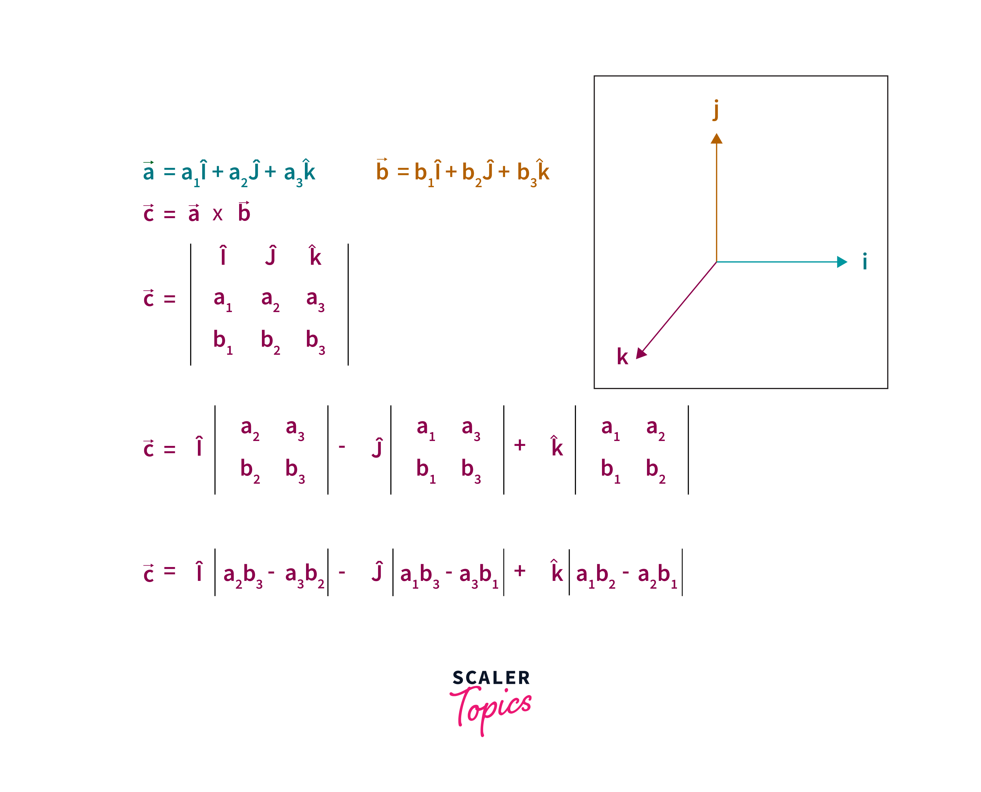 To explain the cross product, let's consider two vectors and . Let θ be the angle formed between and and is the unit vector perpendicular to the plane containing both and . The formula gives the cross-product of the two vectors: . Where ∣∣ is the magnitude of the vector a or the length of , ∣∣ is the magnitude of the vector b or the length of .