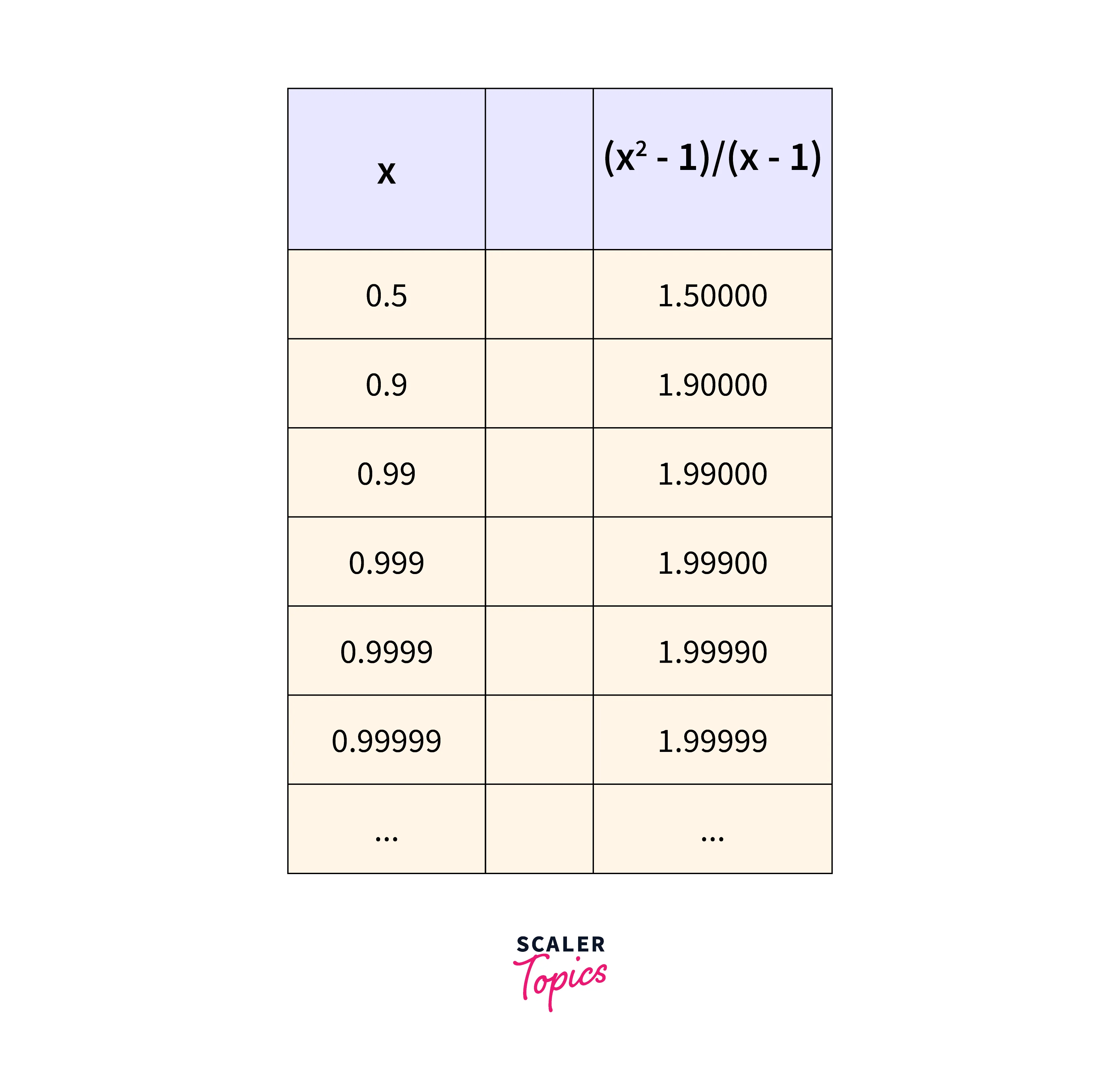 As the value of x goes closer to 1, the value of the function goes closer to 2. So, we can say, "ignoring what happens when , as x goes closer to 1, the answer gets closer to 2".