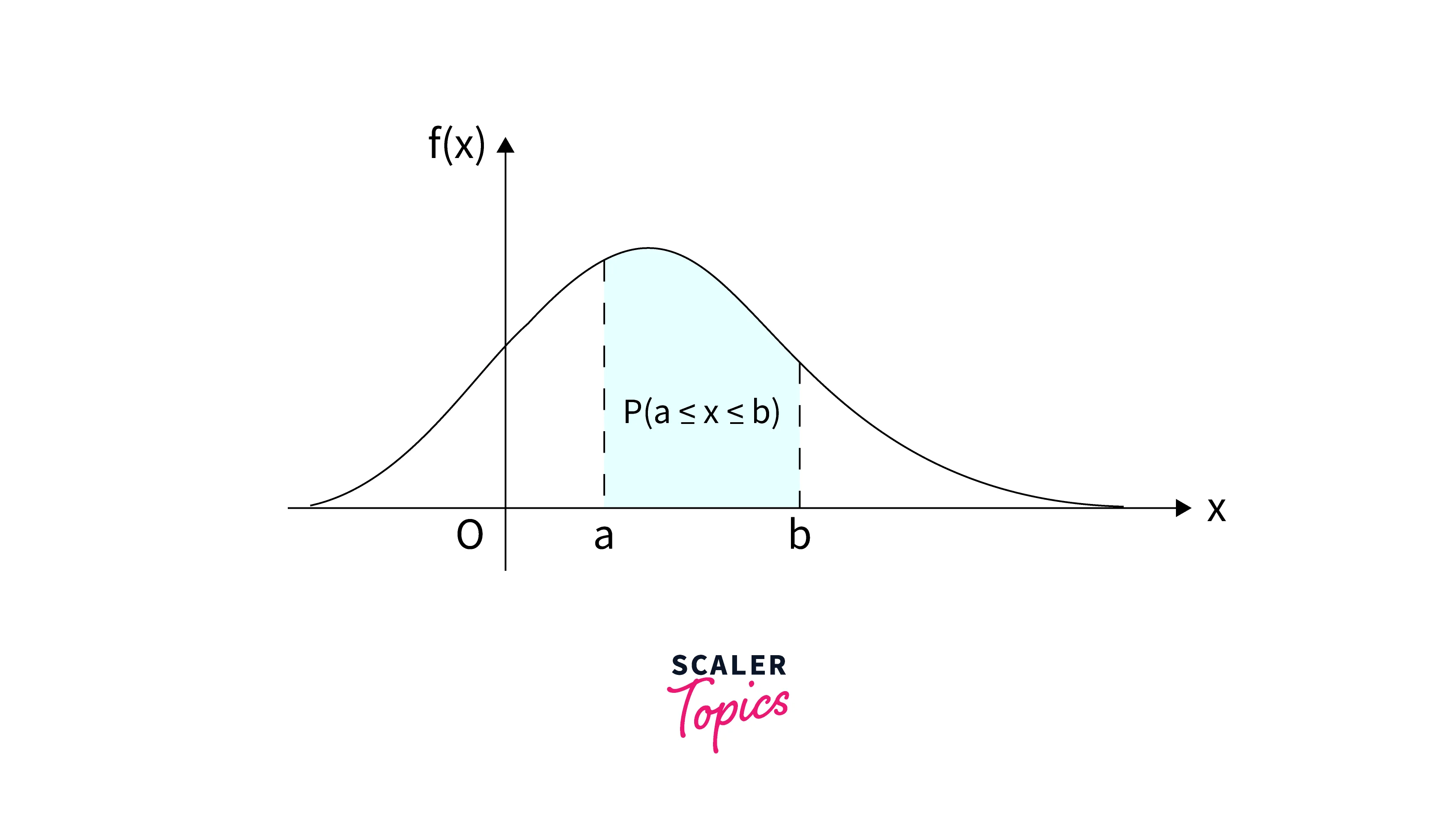 The figure above depicts the probability that continuous random X will lie between two points, a and b. It can be calculated as P() = f(x)dx