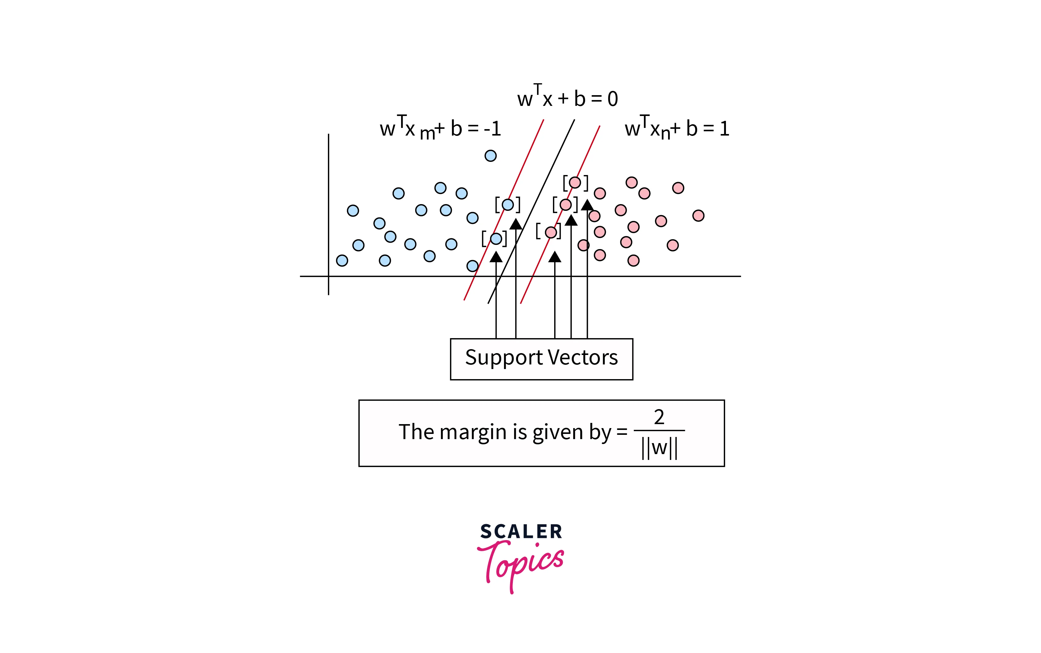 Let us try to understand this with an example first. Given data from two linearly separable classes, one can draw many hyperplanes that correctly identify all samples. The SVM algorithm chooses the one from many possible hyperplanes, which maximizes the distance from all the classes' nearest data points.