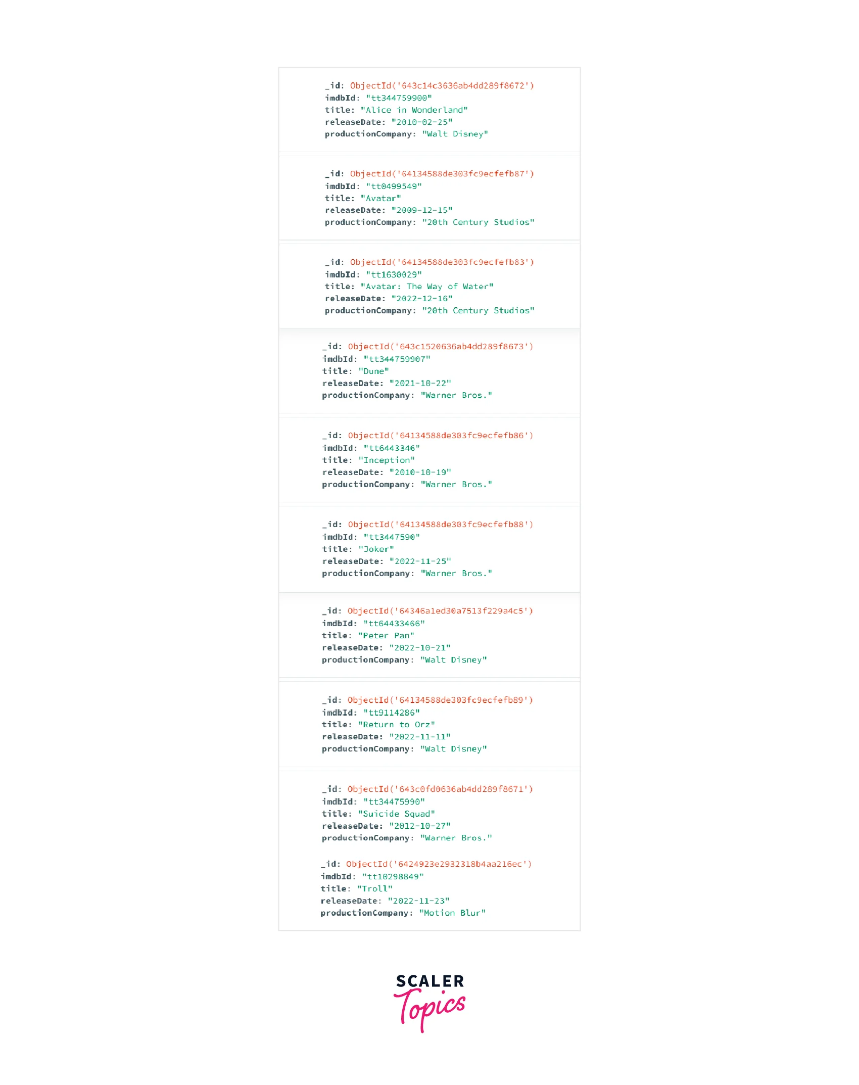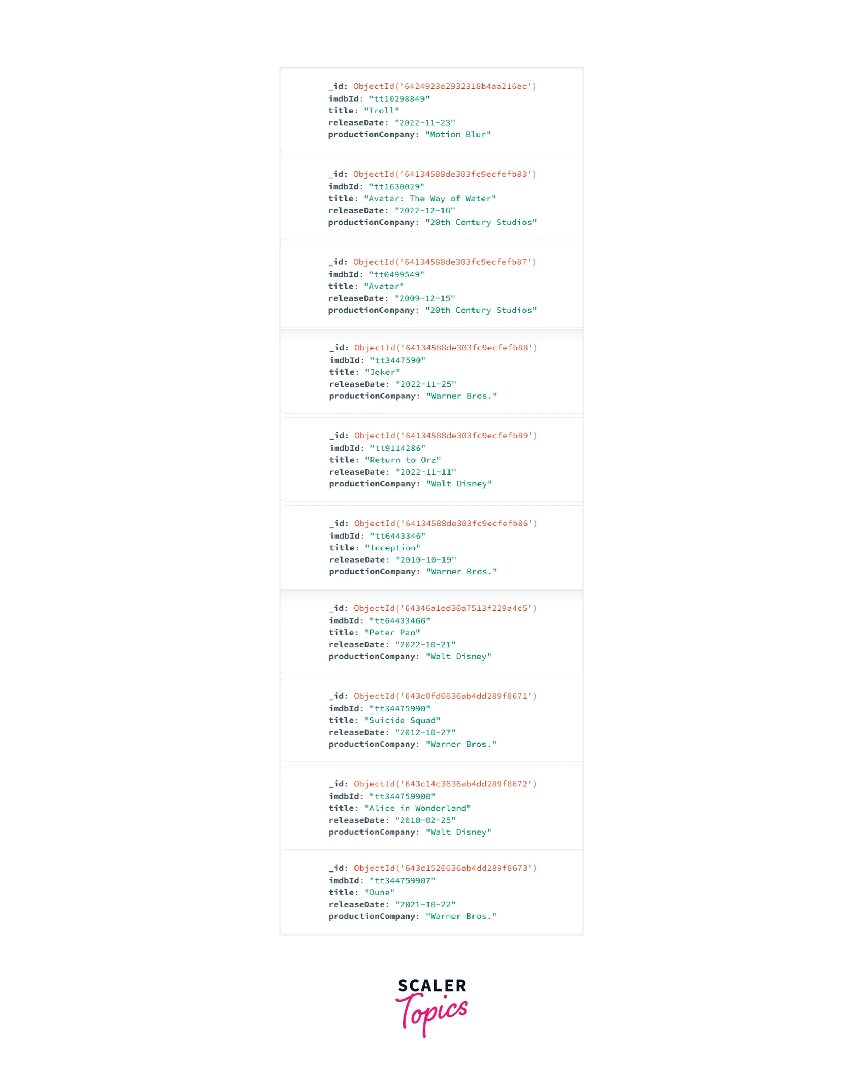 Example 1: We want to group the documents present in the "movies" collection according to their "productionCompany".