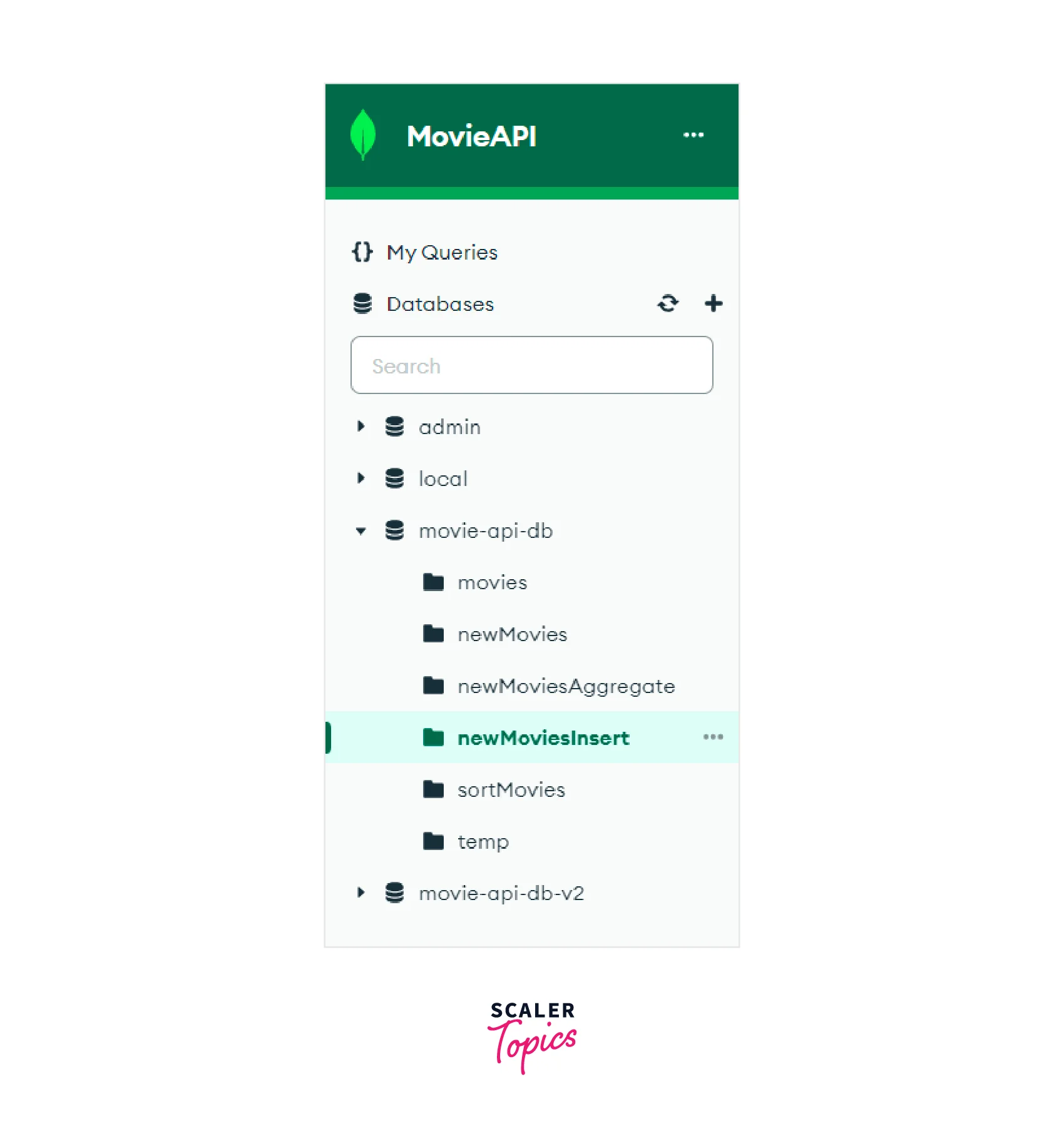 In Example 1, we created a new collection named "newMovies" inside the same database, that is, "movie-api-db". In this example, we will see how to create a new collection in a different database.