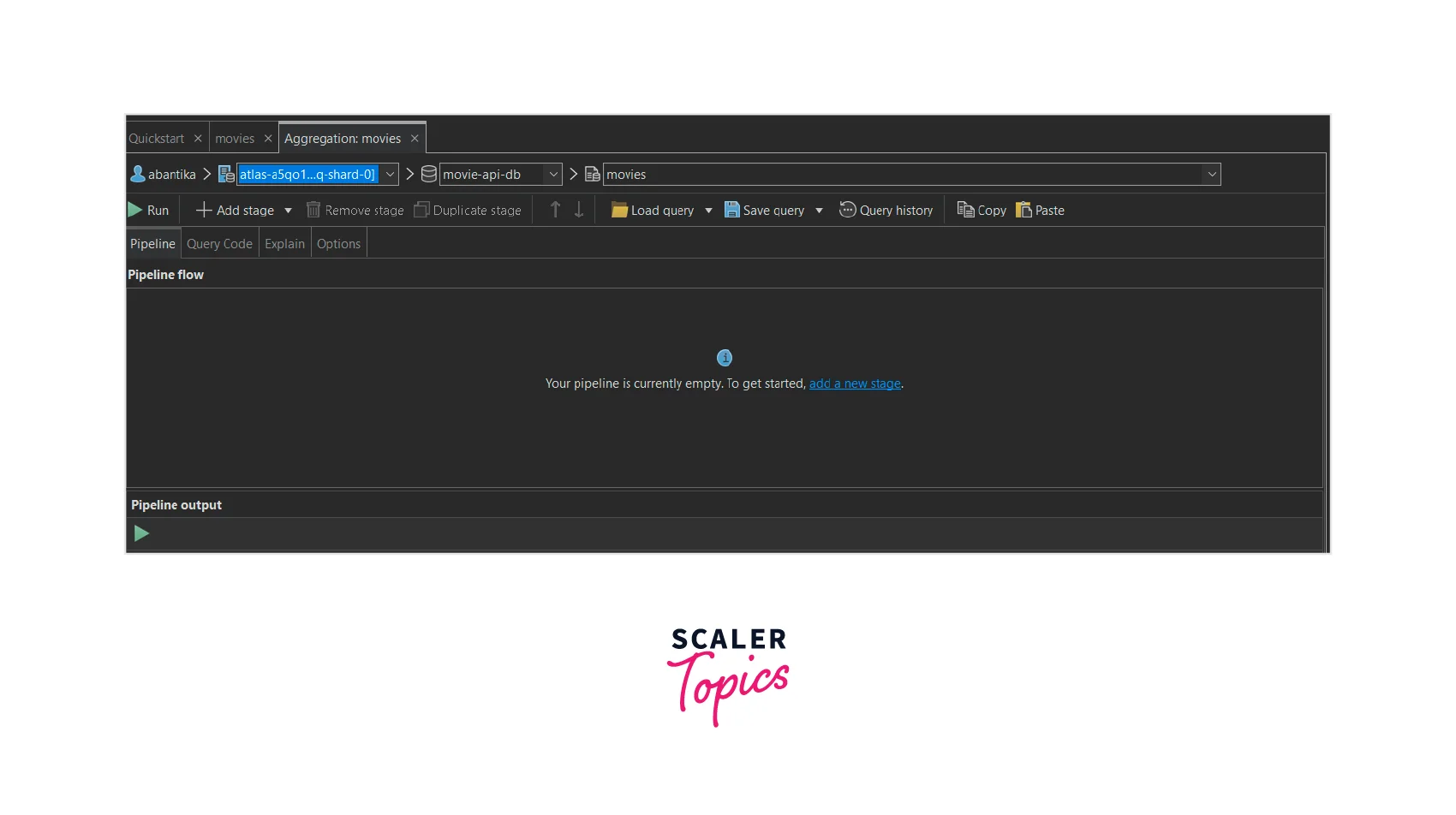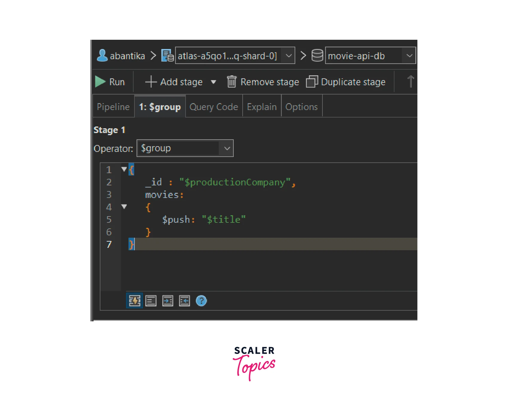 - We will click on the "Run" button present on top to run the aggregation query pipeline.