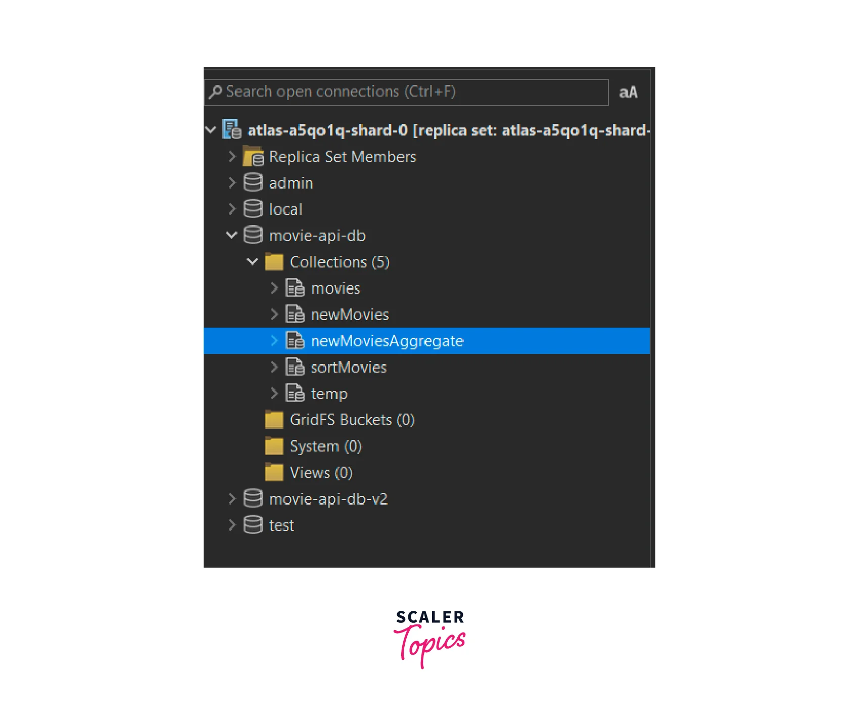 - Right-click on the "movie-api-db" and click on "Refresh All" and we can see that a new collection named "newMoviesAggregate" has been added to the database.