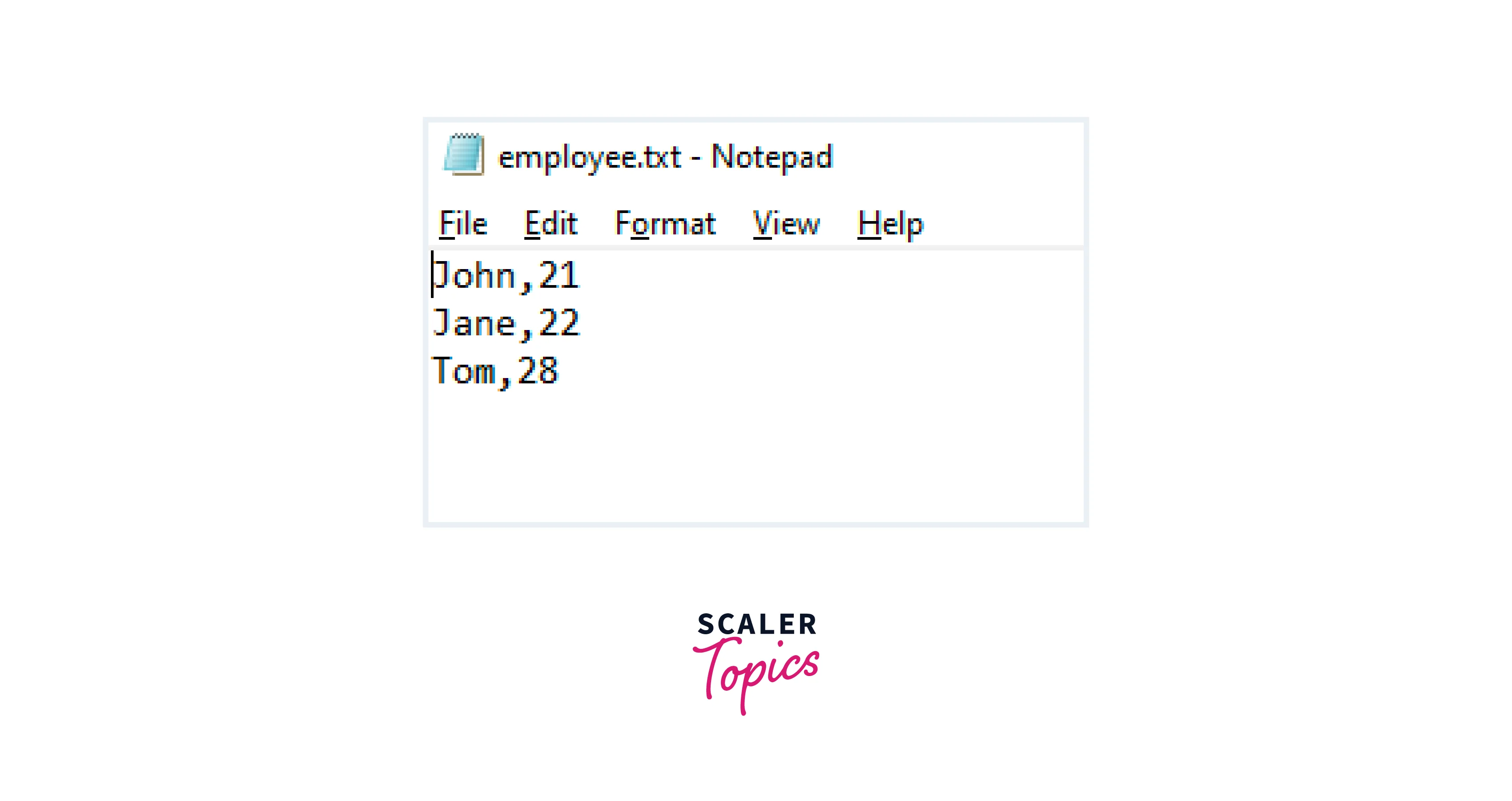 Suppose we have a file named employees.txt file containing the names and ages of the employees.