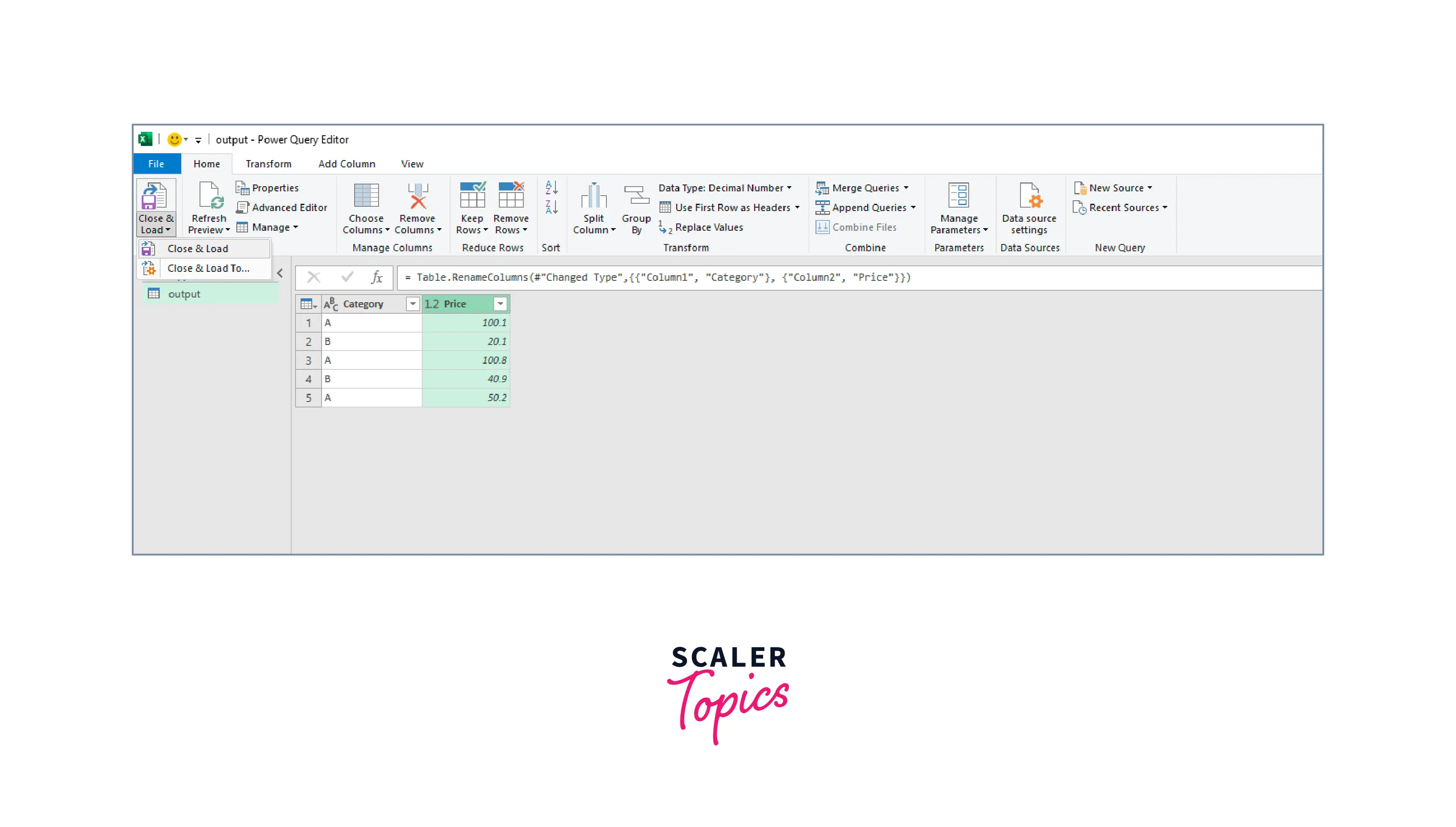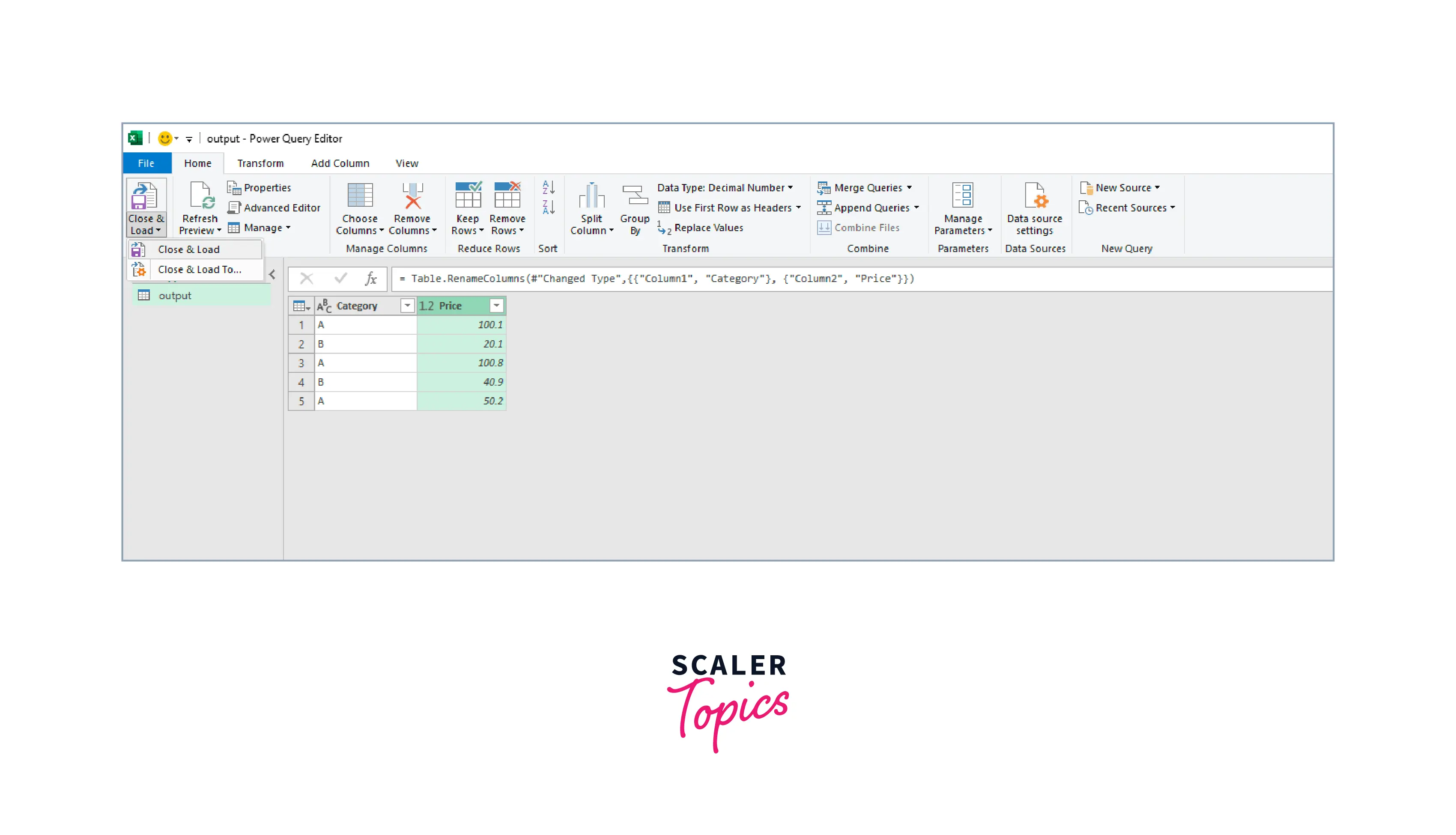 - Now, the Power Query Editor window will open up, add the column names to the data there and click Close & Load.