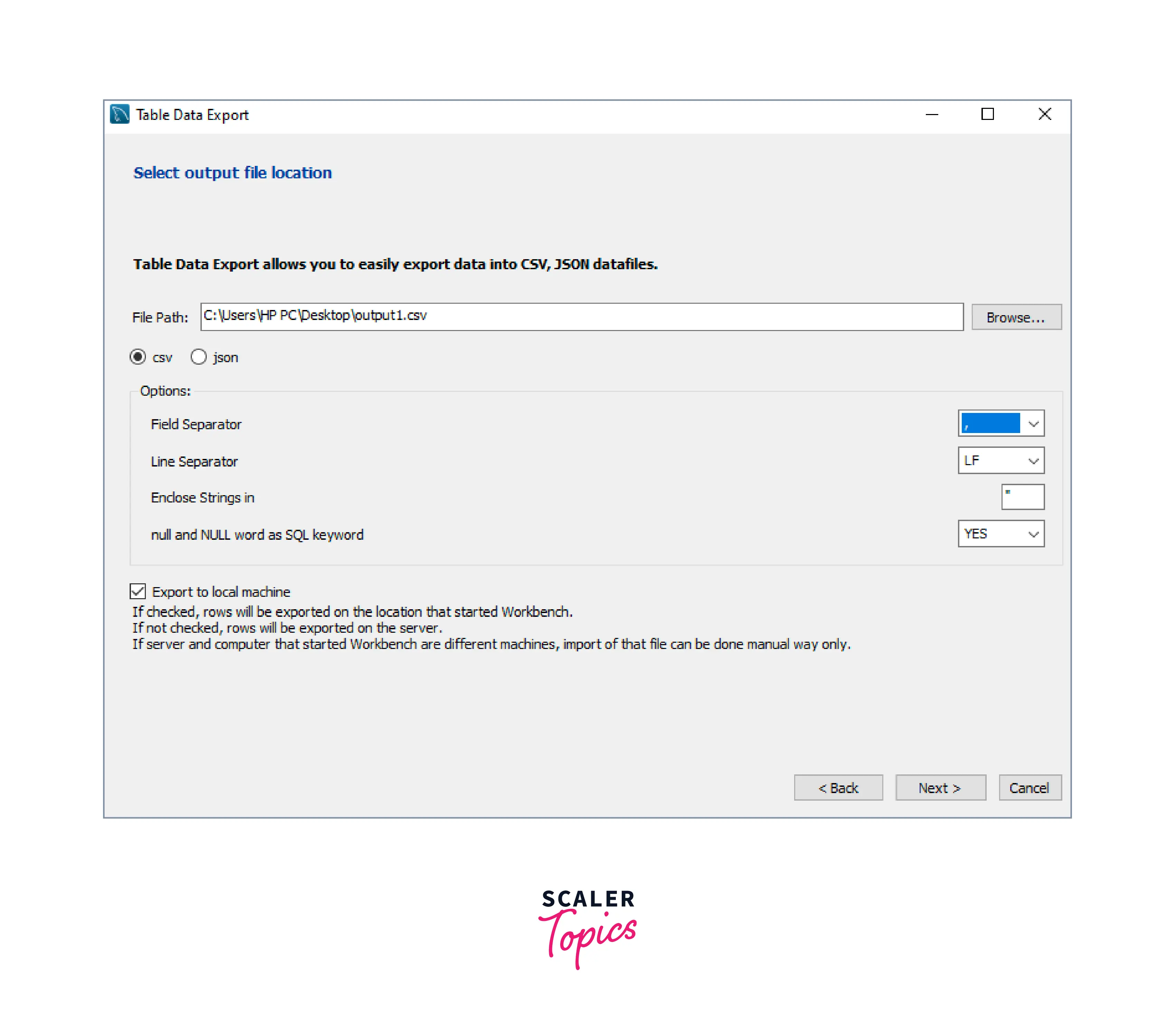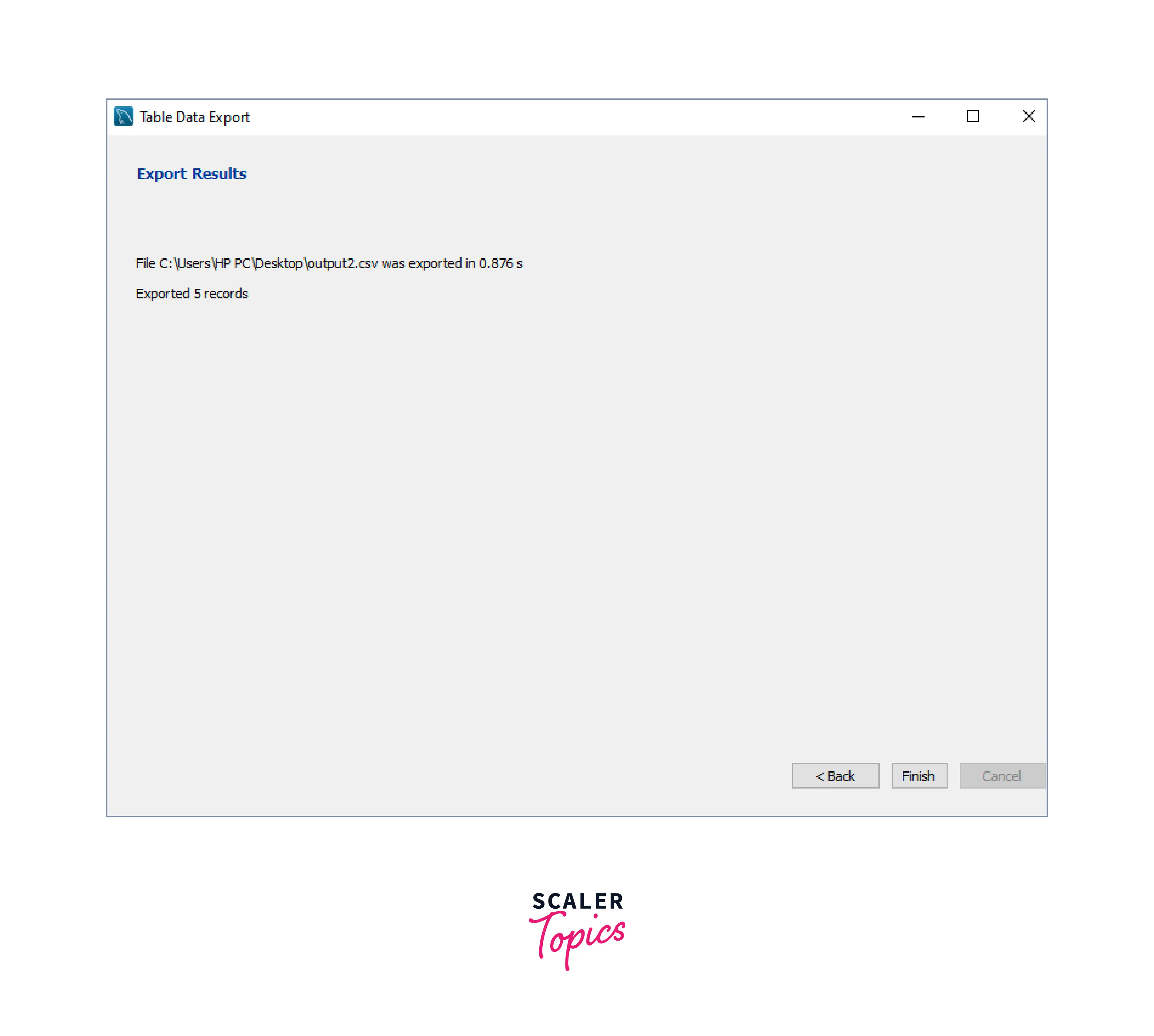 - Now, we will be using the SELECT INTO … OUTFILE statement to export the table to a CSV file which can further be imported to Excel.